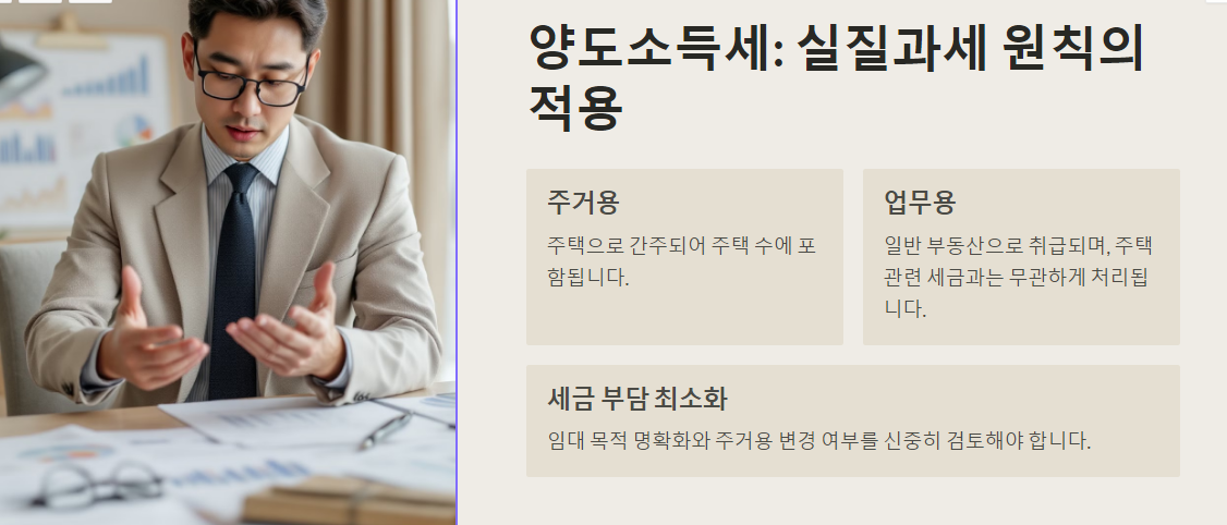 오피스텔의 양도소득세는 실제 사용 목적에 따라 다음과 같이 달라집니다.