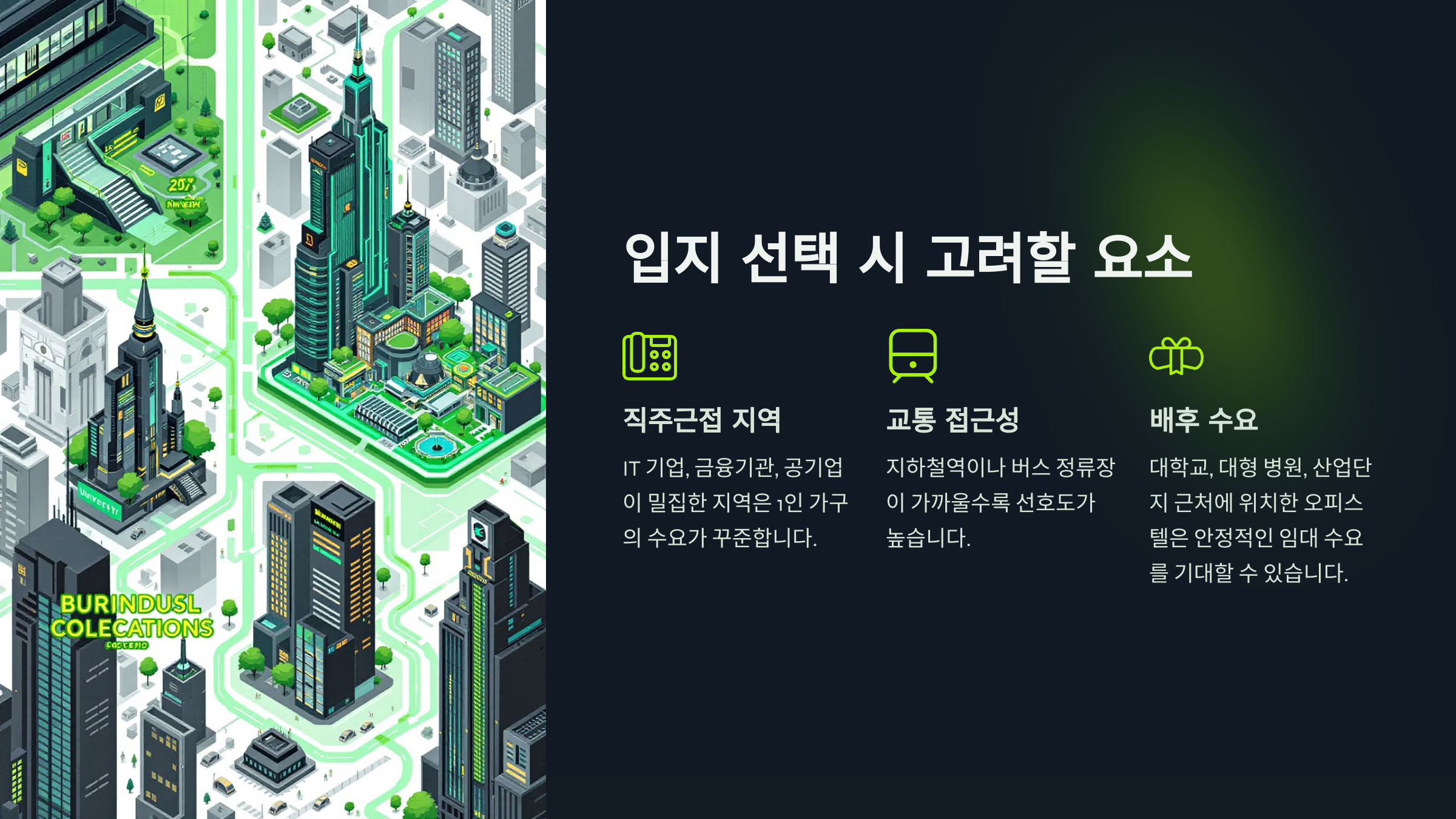 이제 오피스텔 투자에서 가장 중요한 요소 중 하나인 입지 선택에 대해 살펴볼게요! 🚀