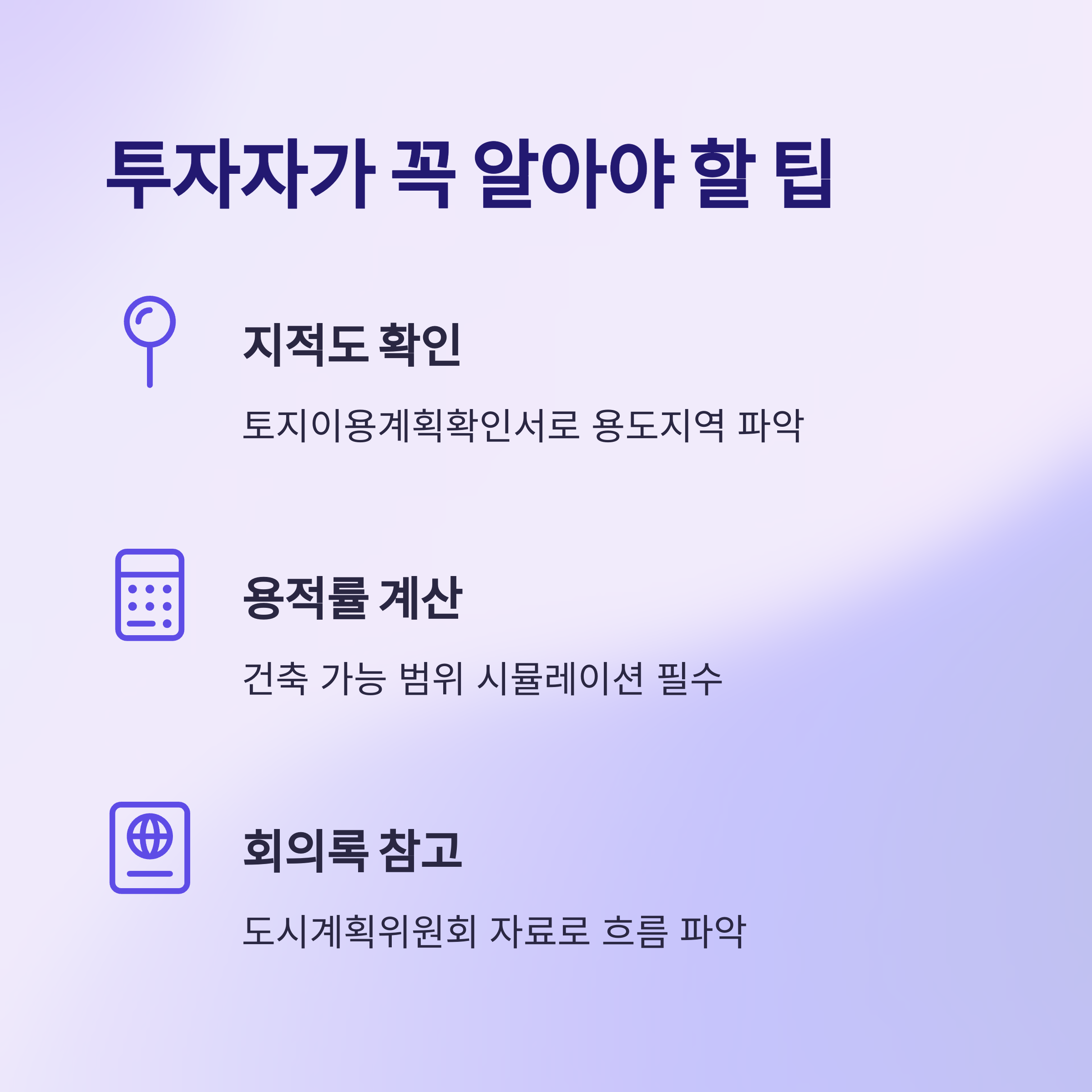 3. **도시계획위원회 회의록을 참고하세요.** 지자체의 용도지역 조정은 대부분 위원회를 통해 결정돼요. 회의록이나 공청회 자료를 보면 해당 지역의 흐름을 미리 파악할 수 있답니다.