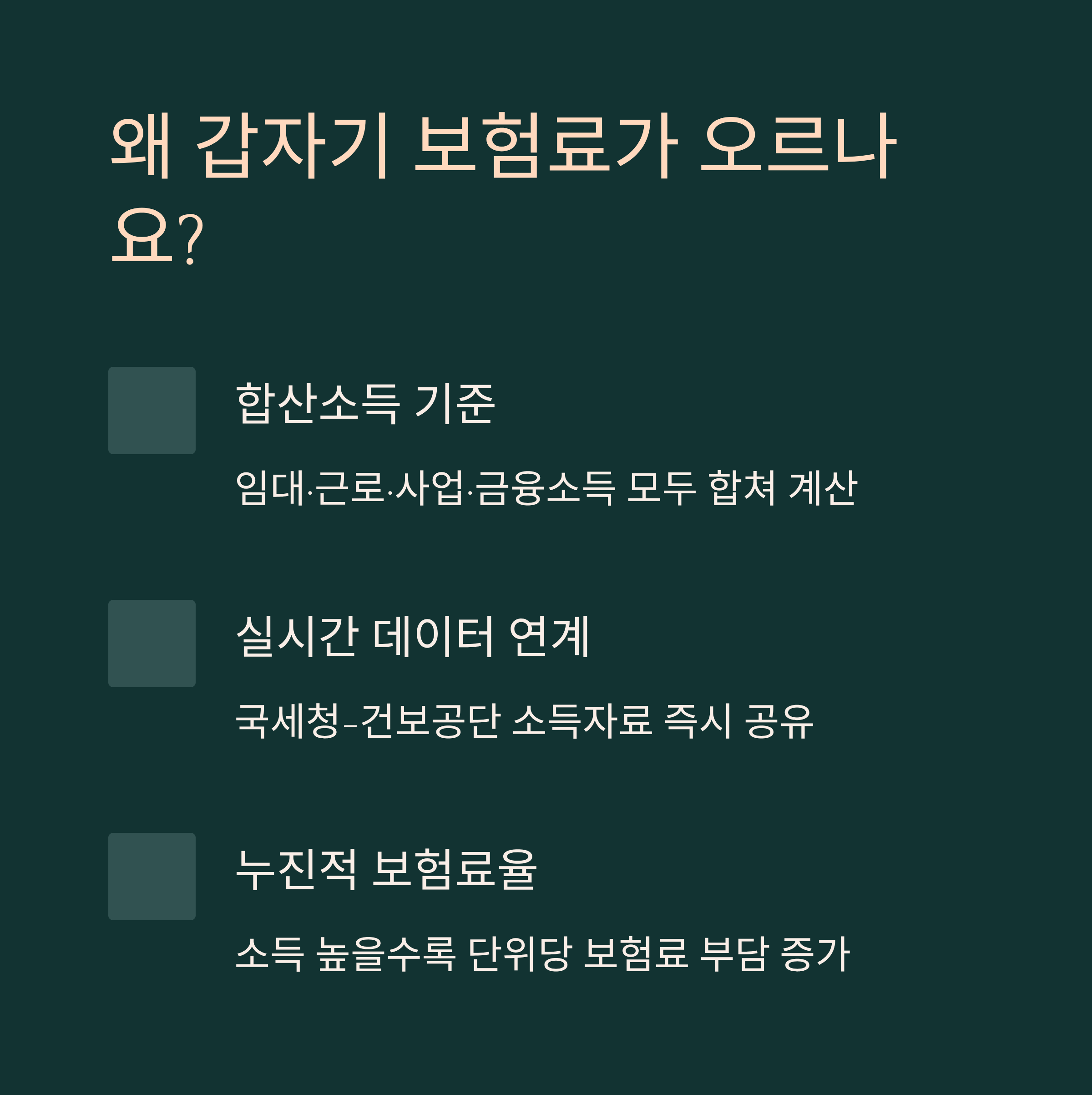 고소득자의 건강보험료가 급격히 오르는 이유는 단순히 임대소득이 반영되기 때문만은 아니에요. 실제로는 건강보험료 부과 체계의 구조와, 국세청과 건강보험공단의 데이터 연계 강화, 그리고 소득구간별 보험료율의 차등 적용이 복합적으로 작용하죠.