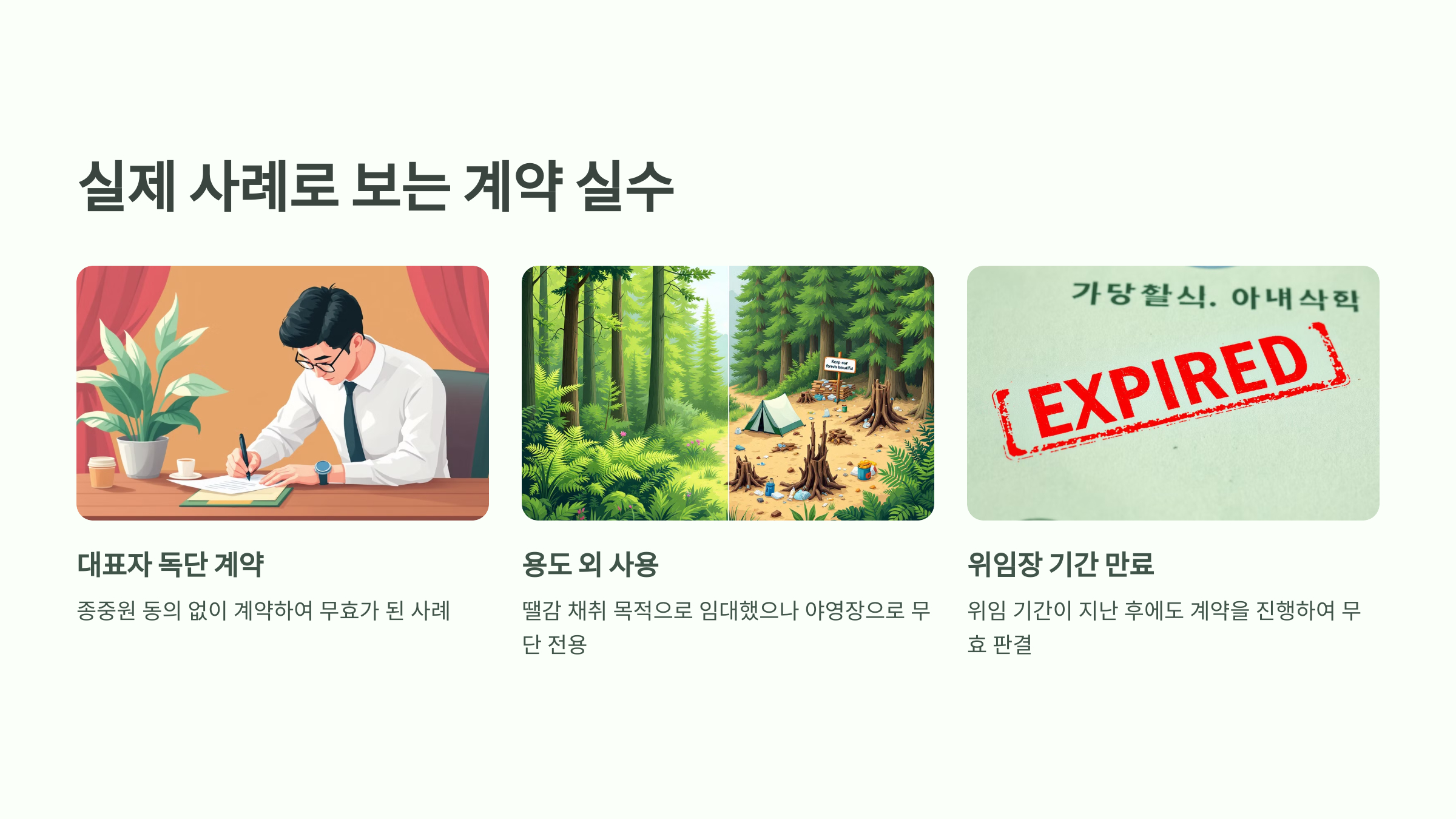 이런 이유로, 임야 매매나 임대차 계약 시에는 반드시 '실질적 권한자'가 누구인지 확인해야 해요. 종중 대표자의 자격 여부, 회의 절차를 통한 승인 여부, 의결서 등의 유무가 핵심이죠.
