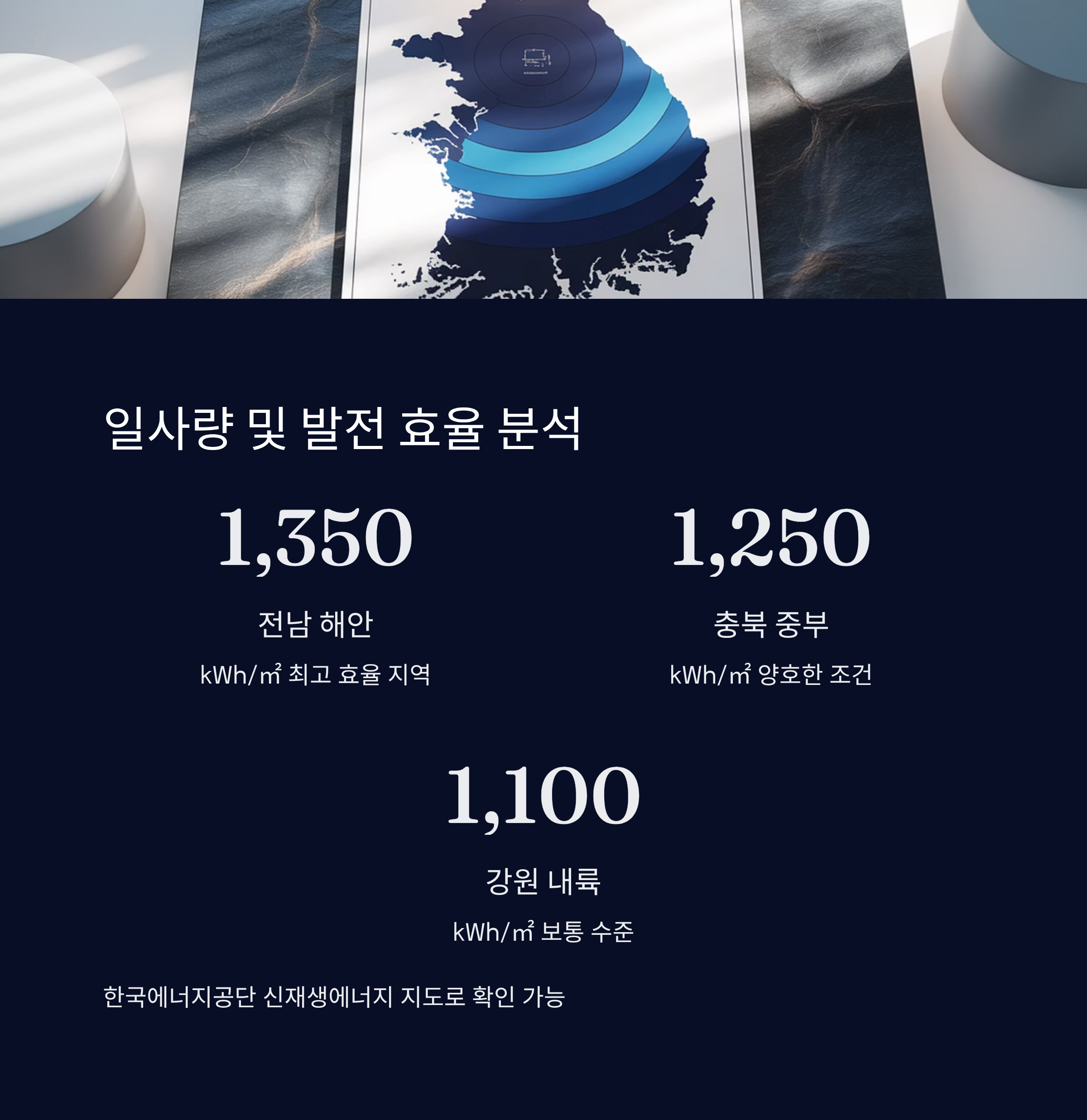 일사량은 한국에너지공단의 '신재생에너지 지도'를 통해 확인할 수 있어요. 해당 지역의 연간 평균 일사량, 월별 데이터까지 제공되니 미리 체크하는 게 좋아요. 예를 들어, 전남 해안 지역은 연 1,300kWh/㎡ 이상, 강원 내륙은 1,100kWh/㎡ 이하인 경우도 있어요.