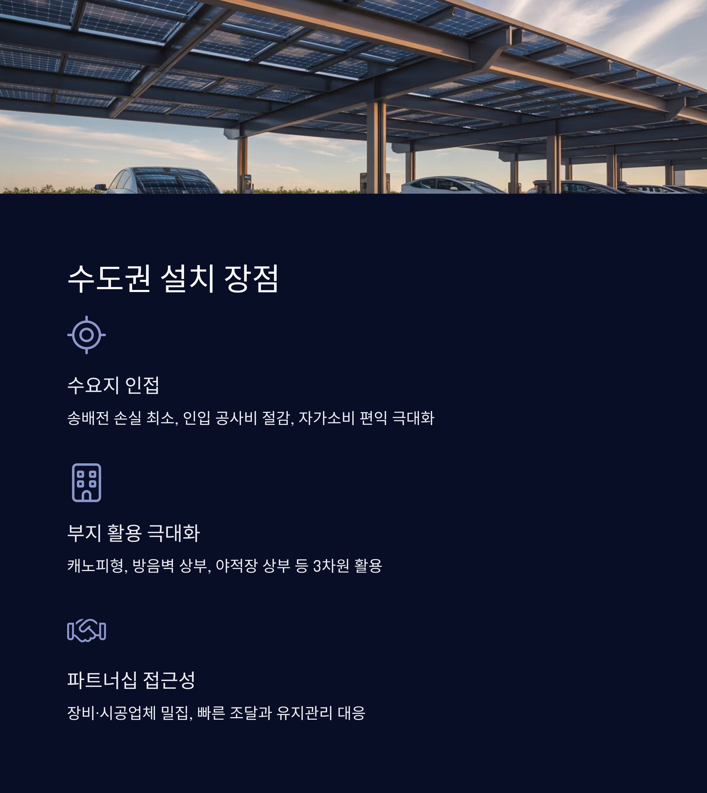 셋째, 파트너십 접근성이 좋아요. 장비·시공·안전·점검 업체가 밀집해 조달과 유지관리가 빠르고, 고장 시 대응 시간도 짧아요. 데이터센터·물류센터·냉동창고 등 에너지 다소비 시설과 PPA 연계가 쉬운 점도 장점이에요.