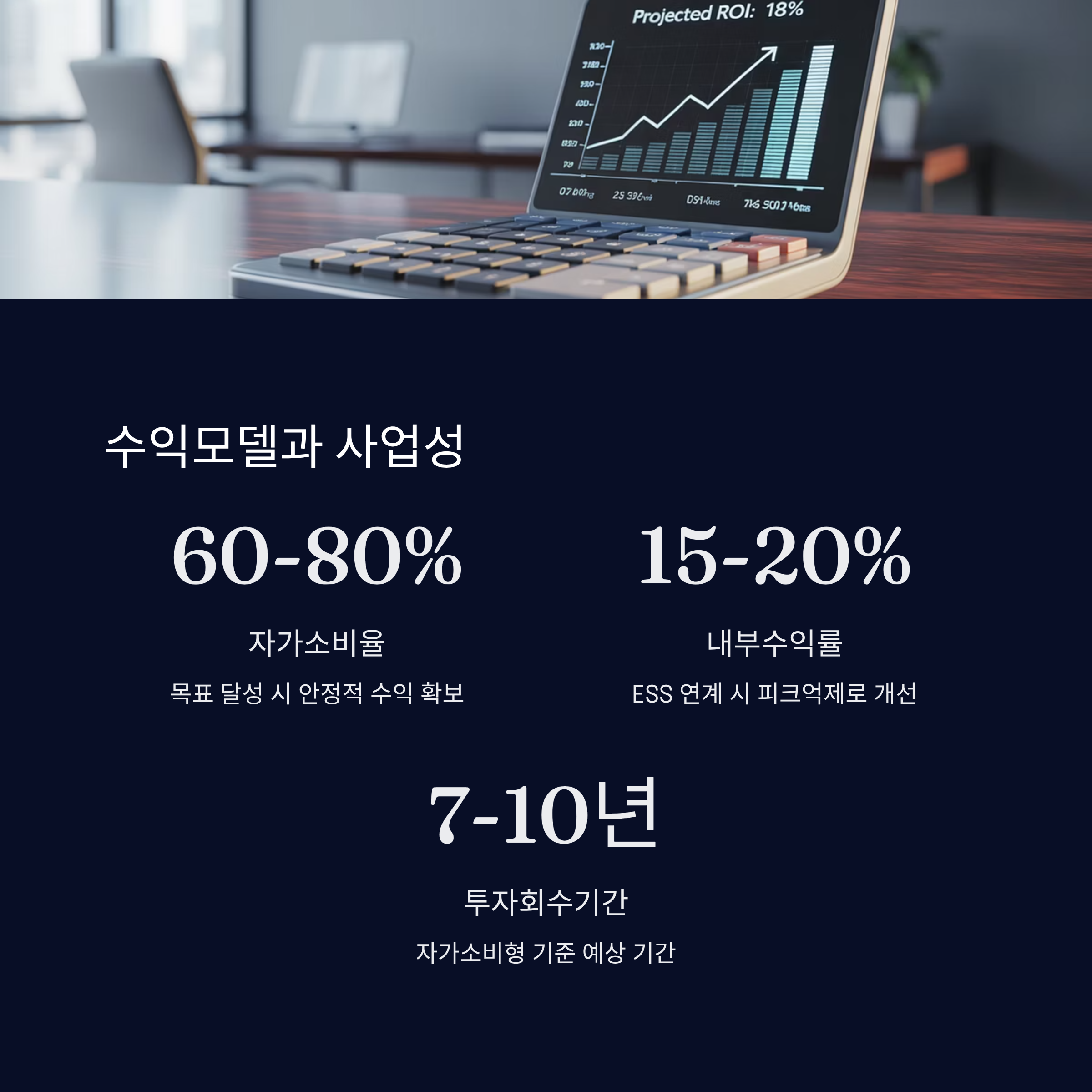 수도권은 자가소비·PPA 중심의 캐시플로가 유리해요. 내부부하(창고, 냉동, 제조, 데이터·IT)와 동시운전 비율을 높이면 절감단가가 SMP 변동보다 안정적인 흐름을 보여요. 내가 생각했을 때 이런 구조는 금융기관 설득에도 플러스예요.