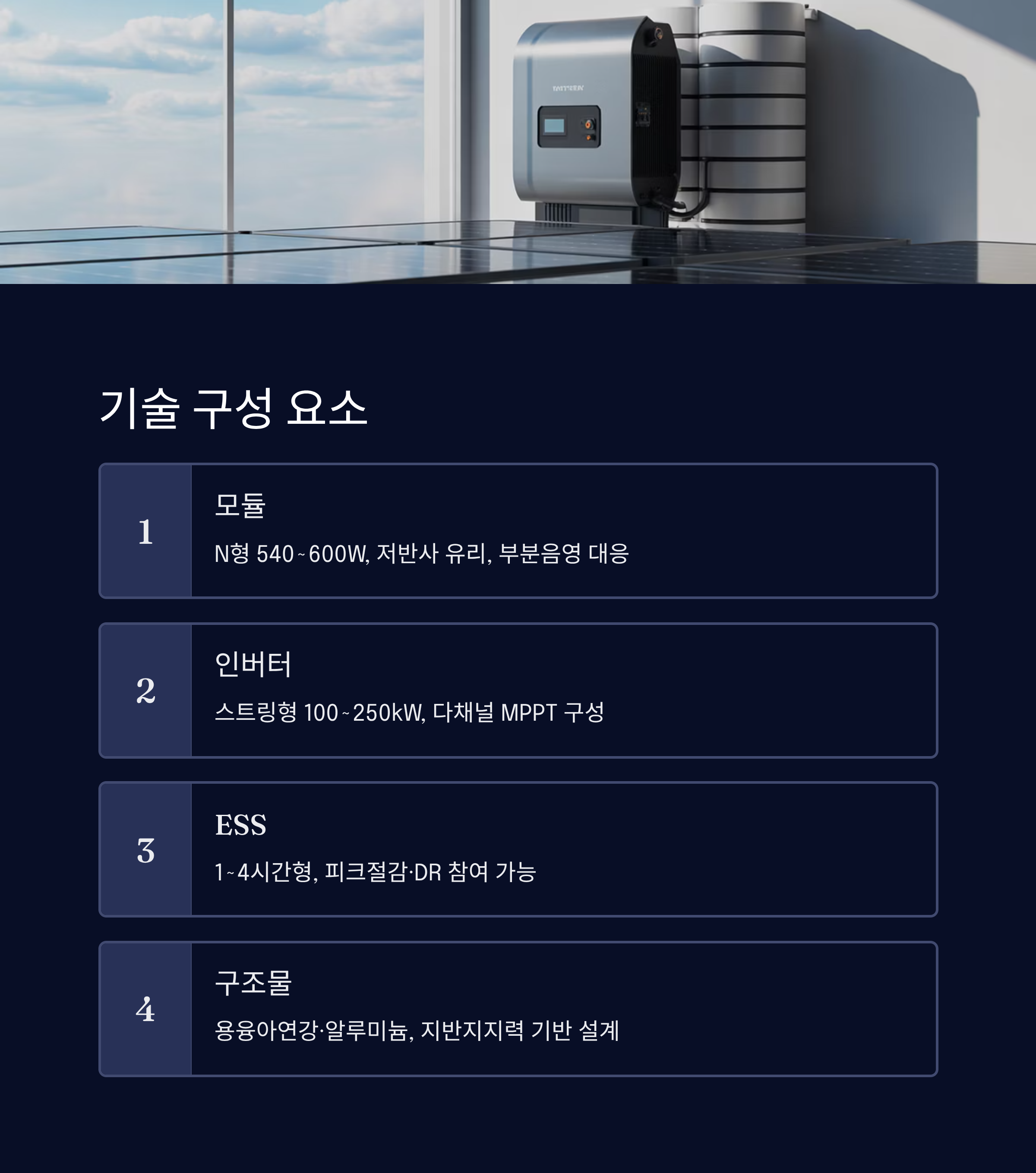 🧪 기술 구성(모듈·인버터·ESS·구조물)