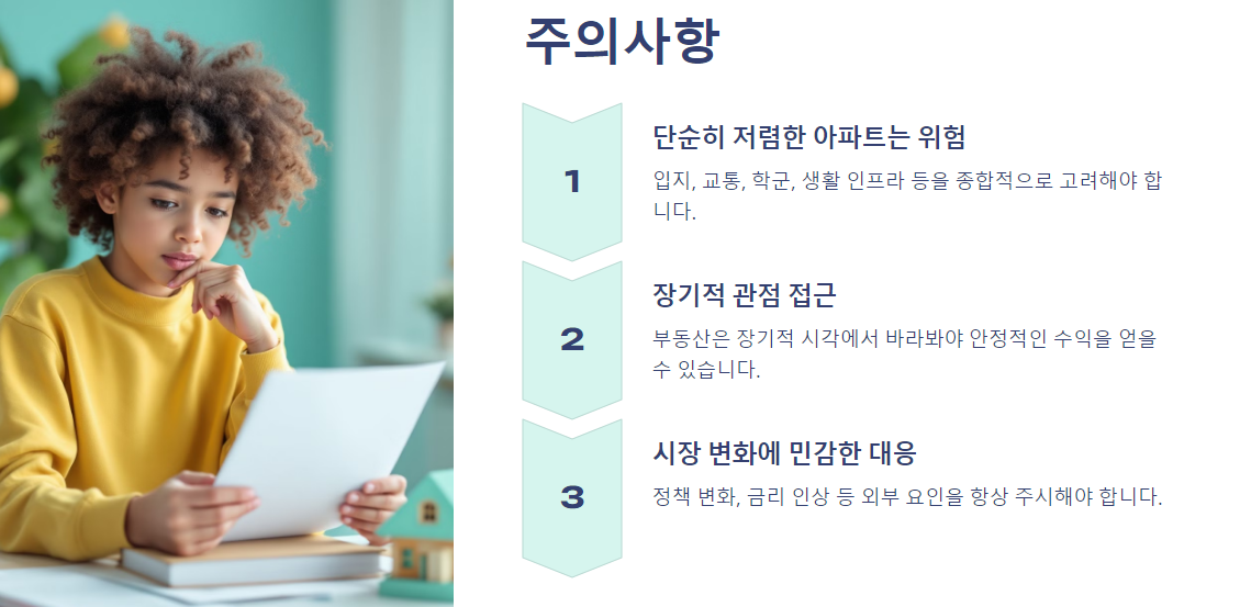 - 단순히 저렴한 아파트에 투자하지 말 것