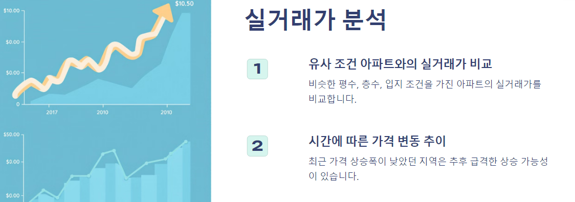 비슷한 평수, 층수, 입지 조건을 가진 아파트의 실거래가를 비교하면 특정 아파트가 저평가되었는지 판단할 수 있습니다. 실거래가는 시장의 실제 수요를 반영하기 때문에 가장 객관적인 지표 중 하나입니다.