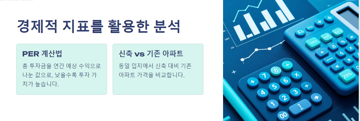 신축 아파트의 평당가와 선택한 아파트의 평당가를 비교해볼 수도 있습니다. 동일한 입지 조건에서 신축 아파트의 가격이 비정상적으로 높다면, 기존 아파트는 상대적으로 저평가된 상태일 가능성이 있습니다.
