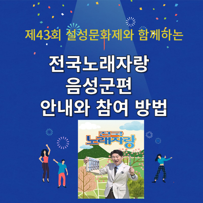 KBS 전국노래자랑 음성군 편에 참가하기 위해서는 사전 신청이 필요합니다. 참가 자격과 신청 방법에 대해 안내드리겠습니다.