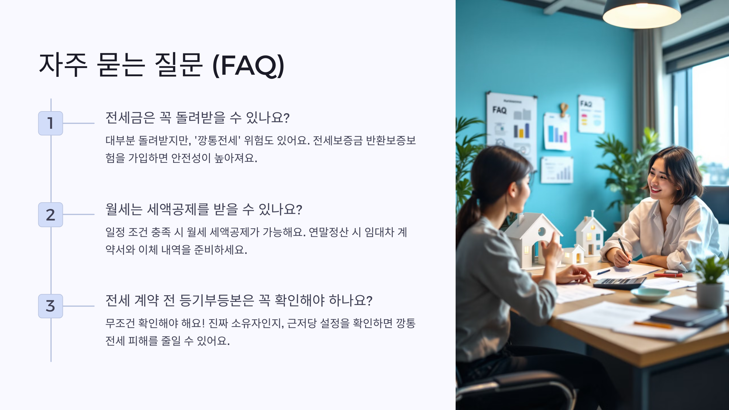 💡 자산을 늘리고 싶은데도 목돈이 부족하다면, 반전세 형태도 고려해볼 수 있어요. 요즘엔 고보증금-저월세 모델처럼 실속형 계약도 많아졌기 때문에, 꼭 둘 중 하나를 고집할 필요는 없어요.