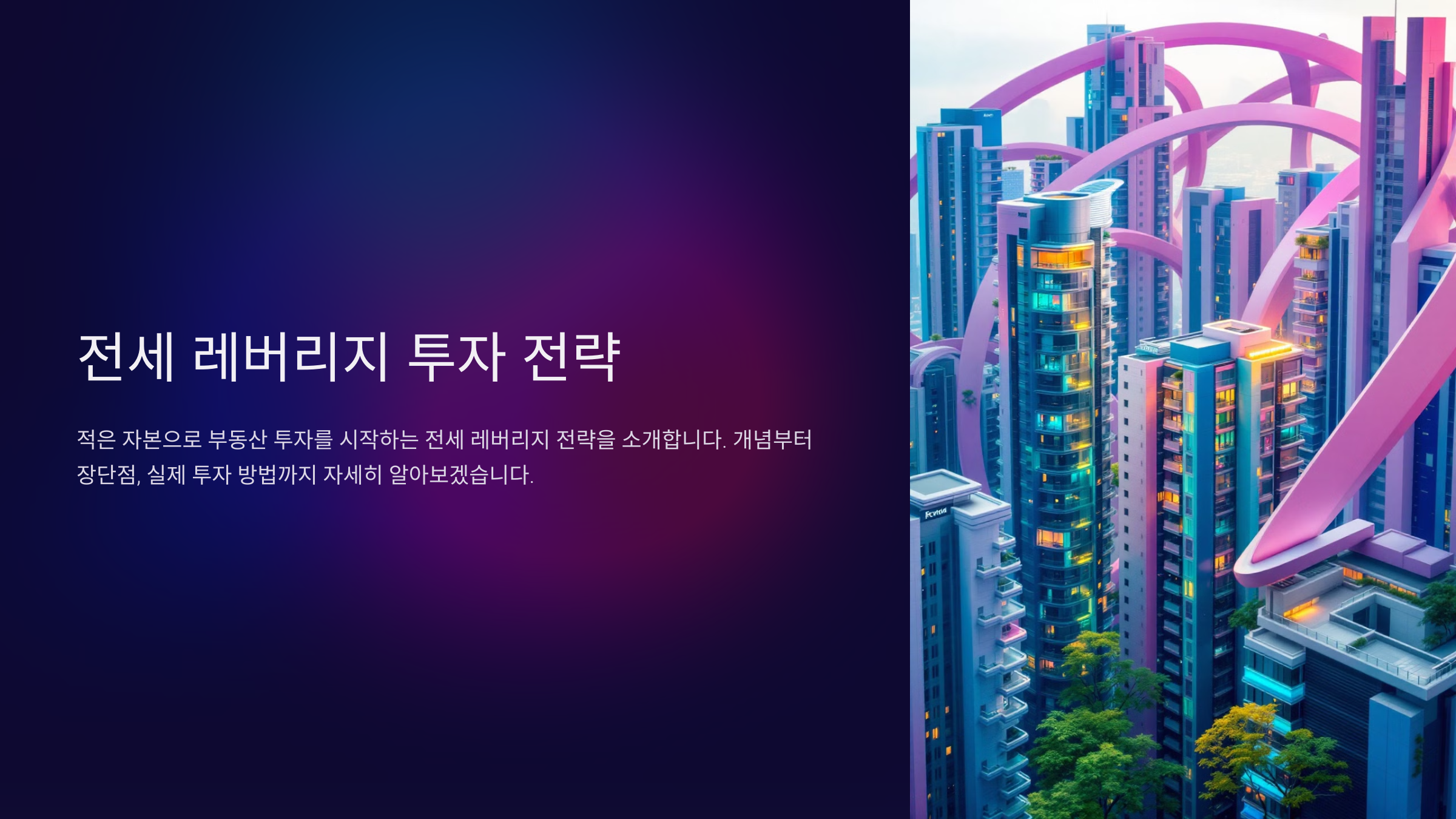 부동산 투자는 자본이 많이 필요하지만, 전세 레버리지를 활용하면 적은 돈으로도 효과적인 투자가 가능해요. 특히 전세를 끼고 매입하는 방식은 실 투자금이 줄어드는 장점이 있어요.