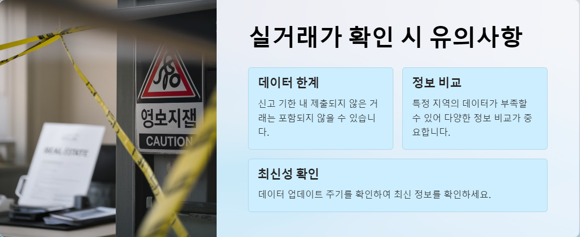 실거래가 확인 시 주의해야 할 몇 가지 사항이 있습니다.