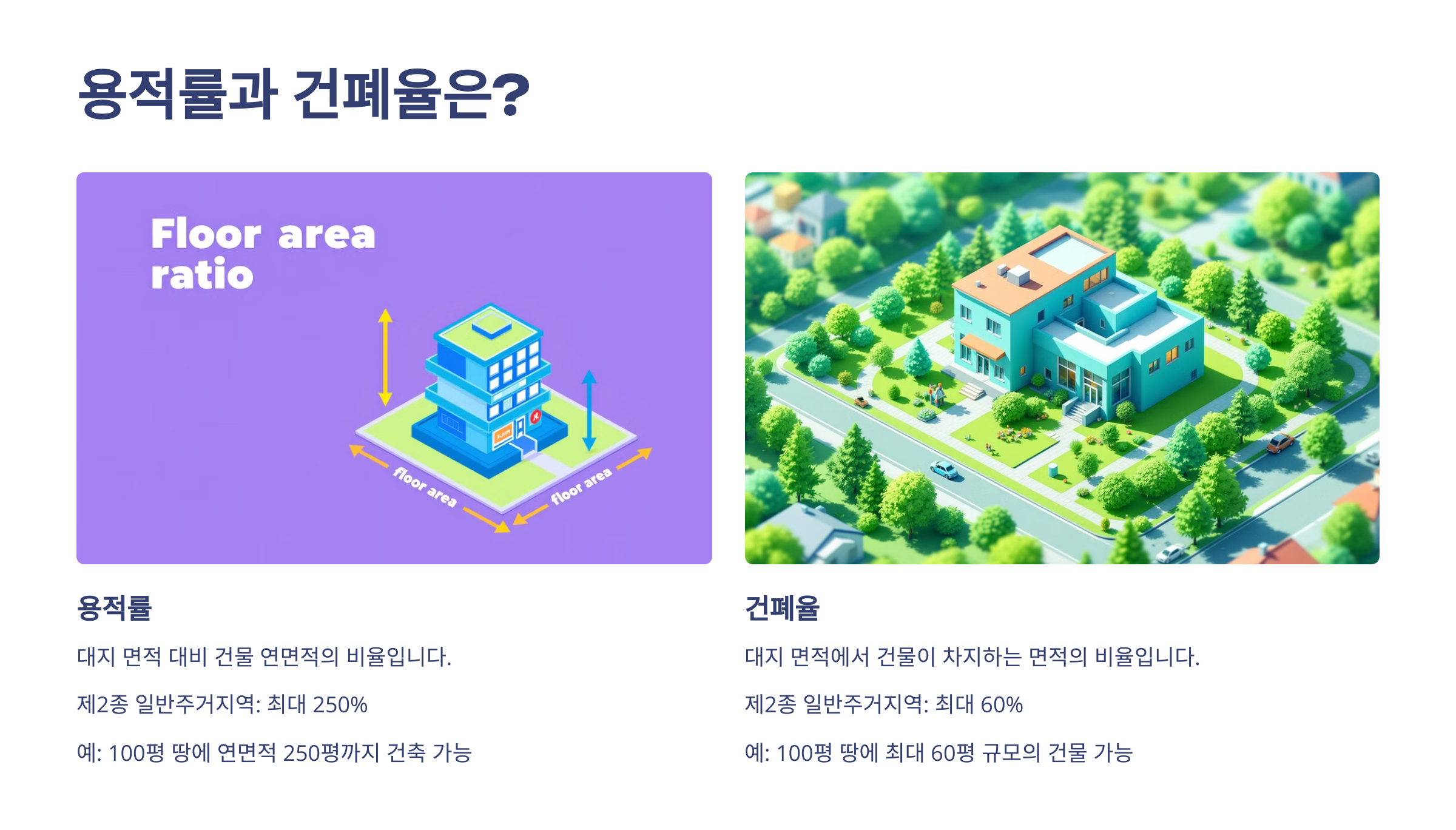 📐 다음은 제2종 일반주거지역의 핵심 지표인 '용적률과 건폐율'을 좀 더 자세히 설명드릴게요!