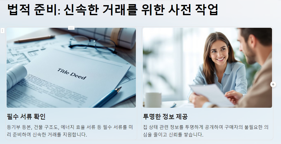 등기부 등본, 건물 구조도, 에너지 효율 증명 등 관련 서류를 미리 준비하고, 정보의 투명성을 유지하세요.