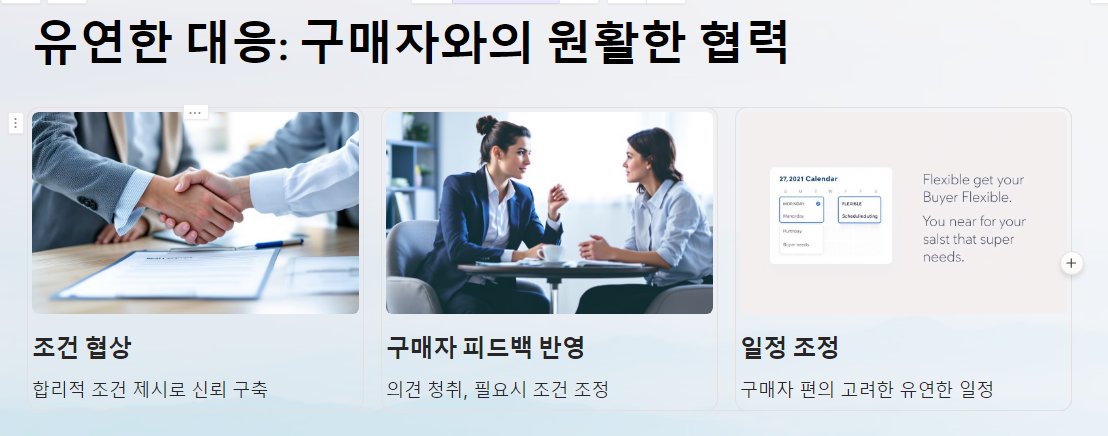 구매자의 요구사항에 유연하게 대응하는 자세는 거래를 빠르게 성사시키는 데 중요합니다.