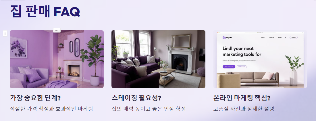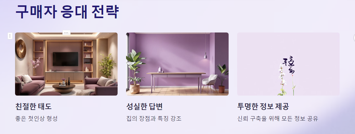 • 고품질의 사진과 가상 투어 영상을 제공하면 구매자의 관심을 끌기 쉽습니다.