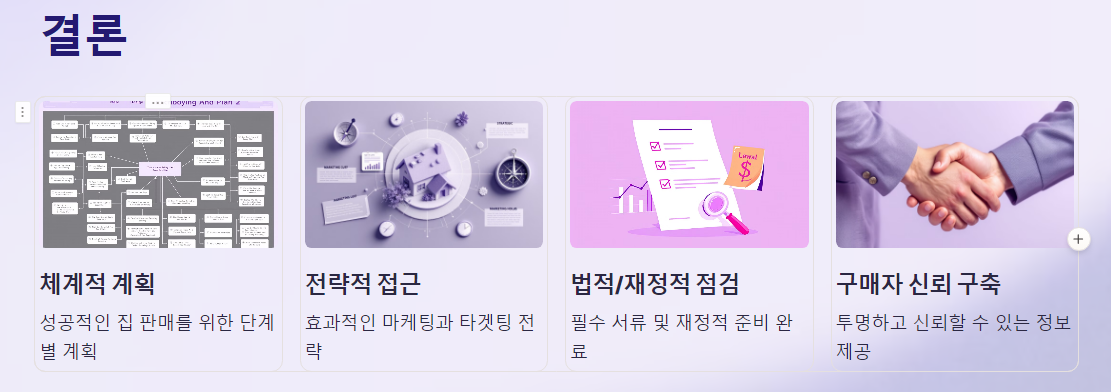 집을 빠르고 성공적으로 판매하기 위해서는 체계적인 계획과 전략적 접근이 필요합니다. 특히, 적절한 가격 책정, 집 상태 개선, 효과적인 마케팅, 전문가와의 협력이 핵심입니다. 법적, 재정적 문제를 미리 점검하고 구매자와 신뢰를 구축하는 자세로 판매 과정을 진행하세요.