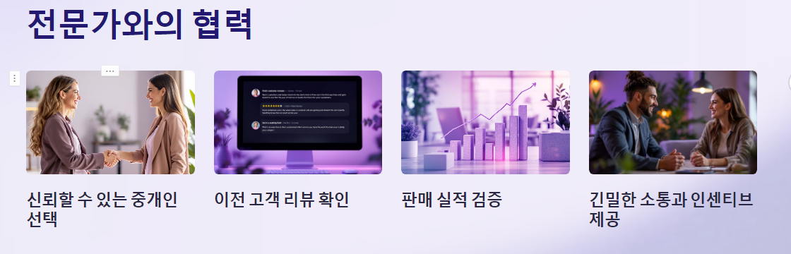 • 검증 방법: 이전 고객들의 리뷰를 확인하고, 해당 중개인이 판매 실적이 있는지 확인합니다.