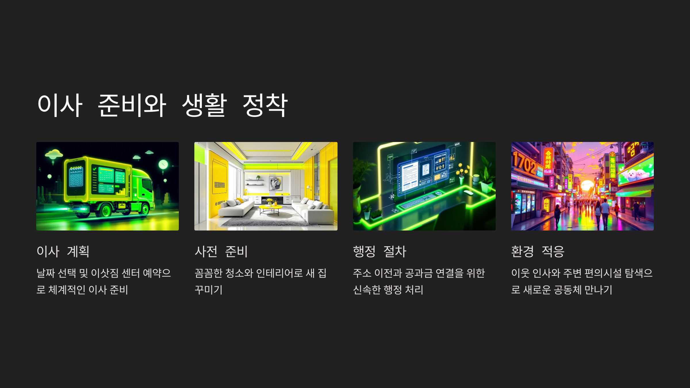 이사 후에는 주변 환경에 적응하는 시간이 필요해요. 이웃과의 인사를 통해 좋은 관계를 형성하고, 근처 편의시설과 대중교통 이용법 등을 익혀 나가는 것이 새로운 환경에 빠르게 적응하는 방법이에요.