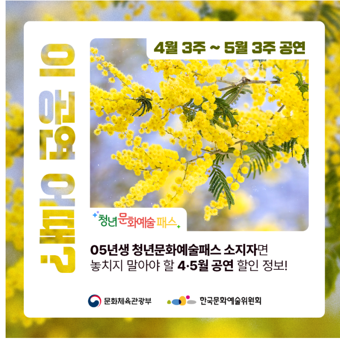 2005년생 청년들의 문화생활을 위해 지난 3월 28일부터 시작된 '청년 문화예술패스'가 발급 12일 만에 50% 발급률을 넘어섰습니다!