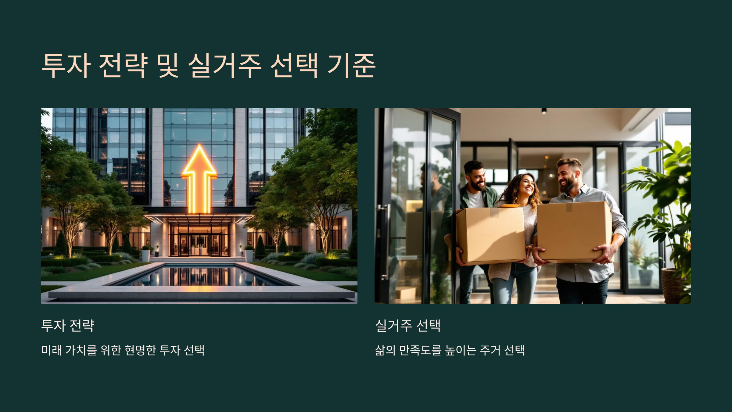 - ✅ 자녀 교육, 직장과의 거리, 생활 인프라 등을 따져보고 선택해야 해요.