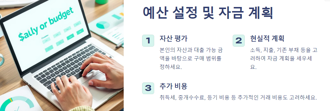 아파트 매매를 시작하기 전 가장 먼저 해야 할 일은 예산을 설정하는 것입니다. 본인의 자산과 대출 가능 금액을 바탕으로 구매할 수 있는 범위를 정해야 합니다.