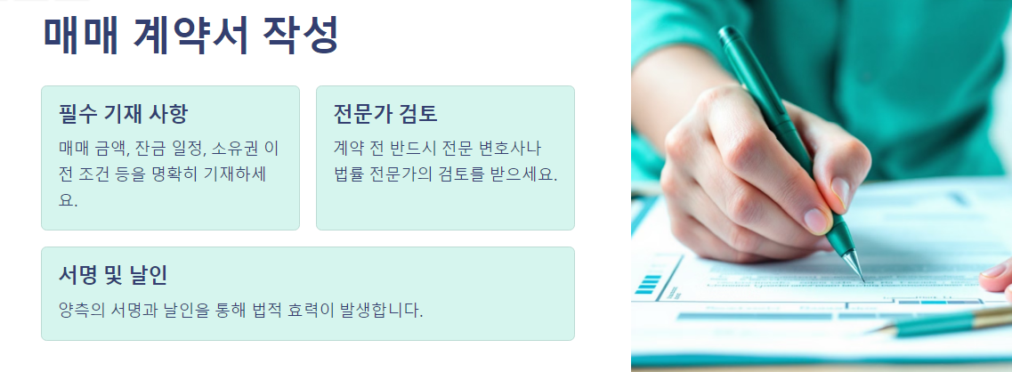 매매 계약은 부동산 거래의 중요한 단계입니다. 중개인의 도움을 받아 신중히 작성하세요.