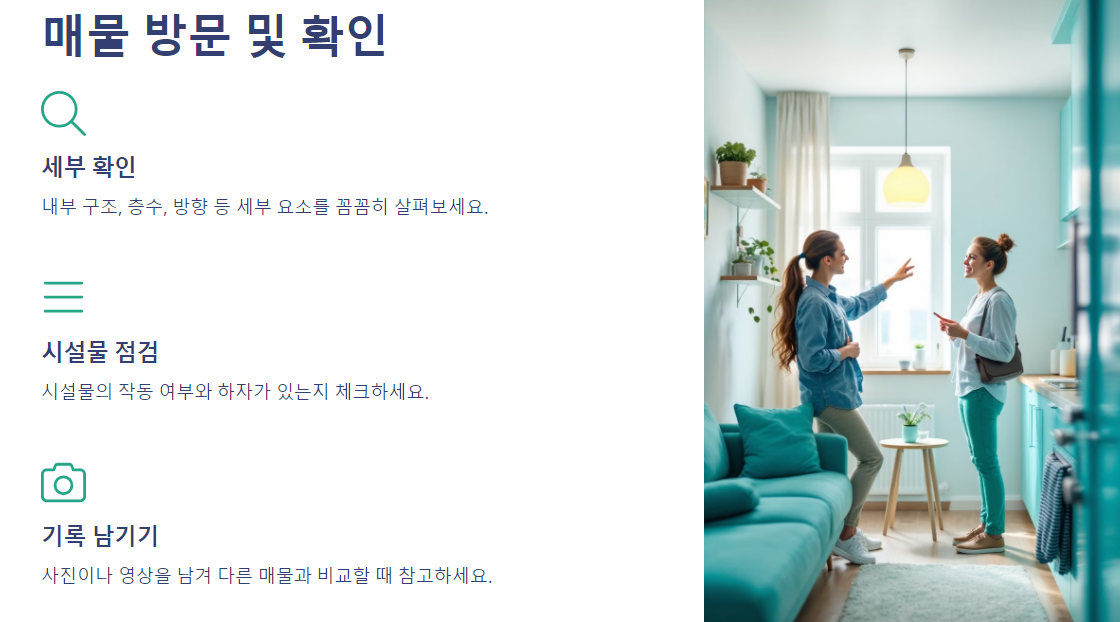 A: 매물 상태를 최종 확인하고 하자가 없는지 점검하세요.