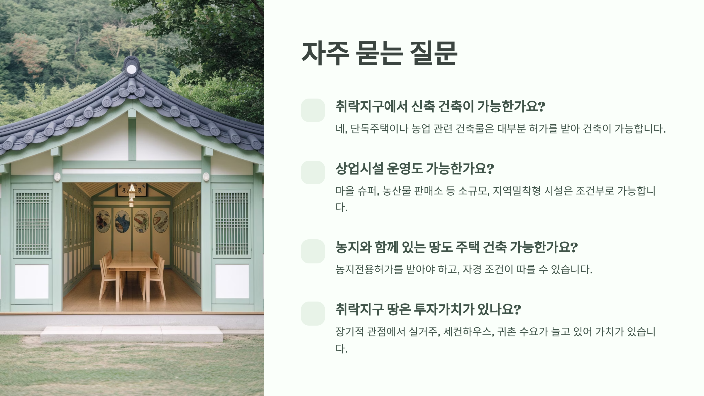 지금까지 자주 받았던 취락지구 관련 질문 8가지를 정리해서 알려드릴게요.