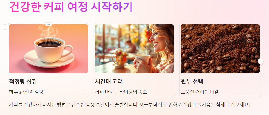 커피를 건강하게 마시는 방법은 단순한 음용 습관에서 출발합니다. 오늘부터 작은 변화로 건강과 즐거움을 함께 누려보세요! ☕