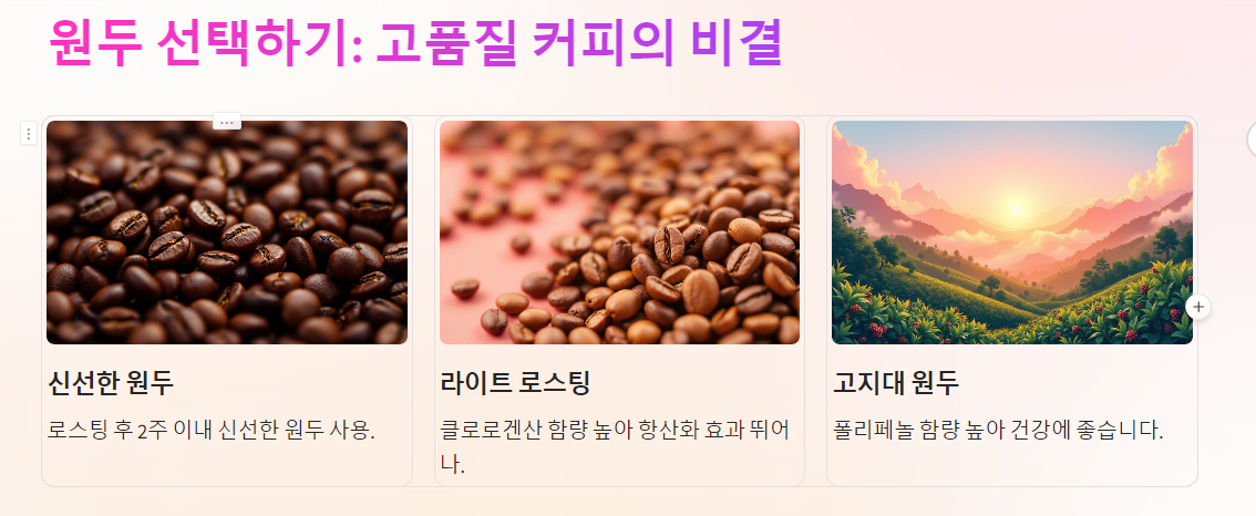 신선한 라이트 로스팅 원두나 고지대 원두가 좋습니다.