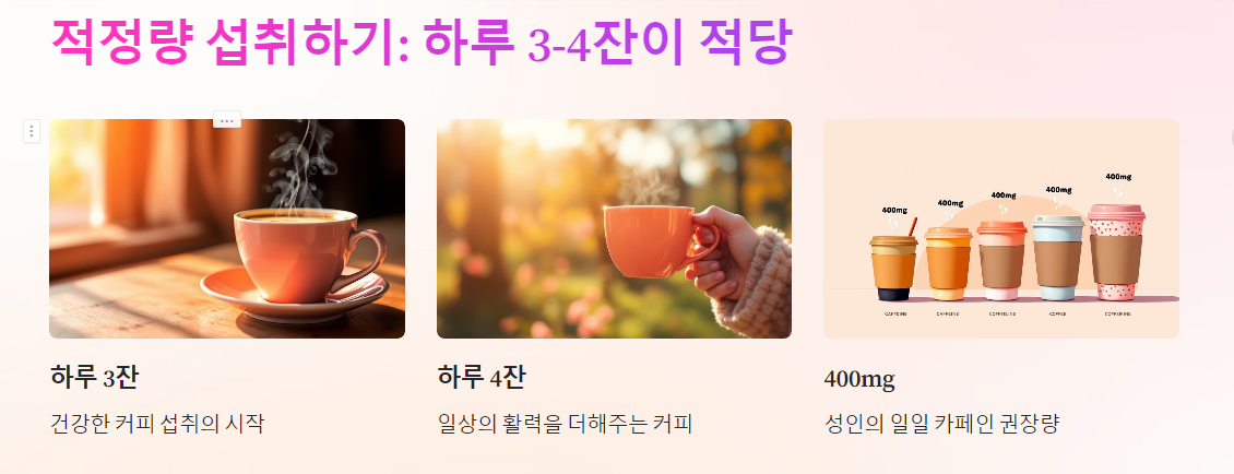 하루 3~4잔이 적정량으로 권장됩니다.