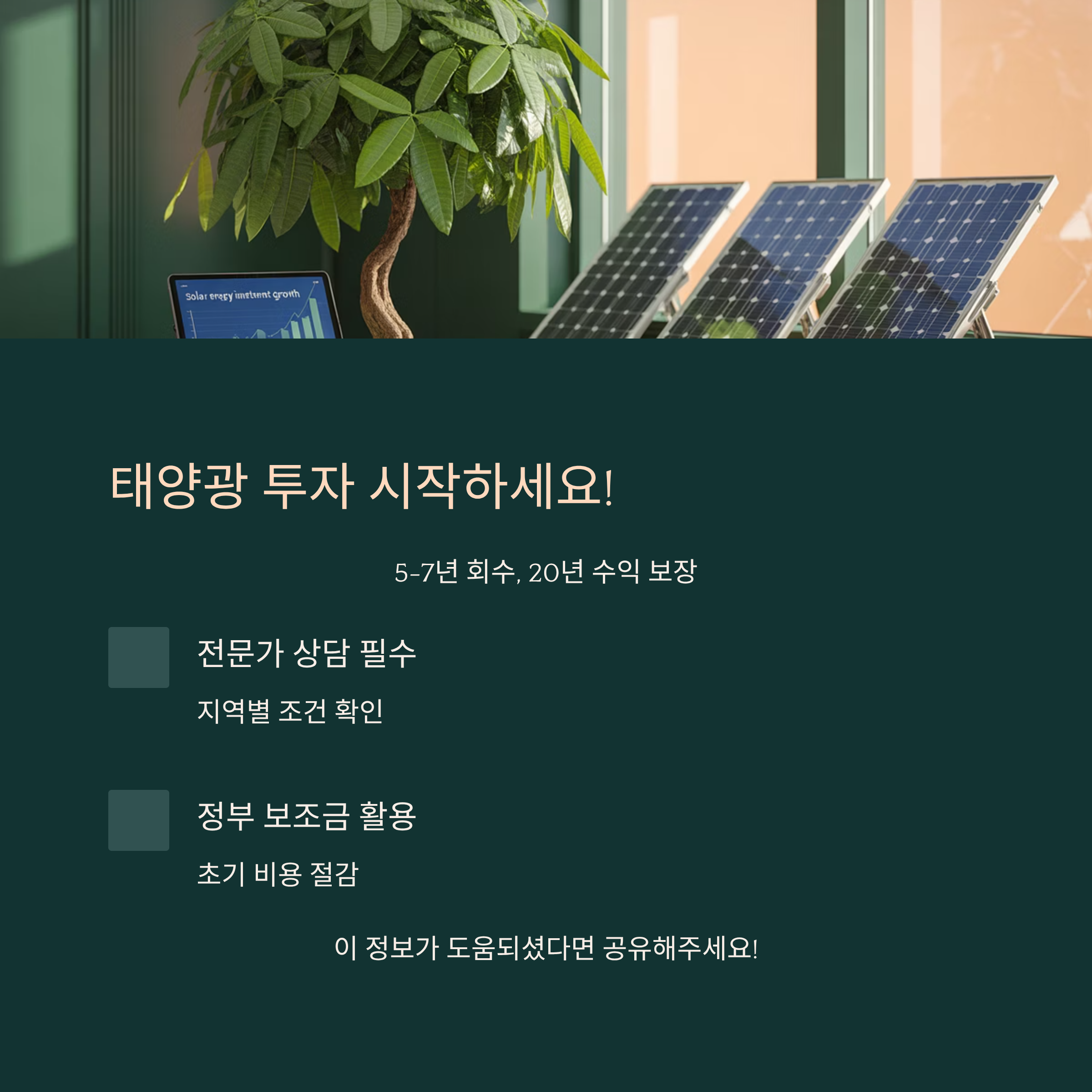 다만 대출을 통해 설치하는 경우 이자 비용이 들어가고, 시간이 지날수록 패널 효율이 저하되기 때문에 실제 수익은 조금 줄어들 수 있어요. 그래도 일반적인 투자 상품에 비해서는 회수 속도가 빠른 편이에요.