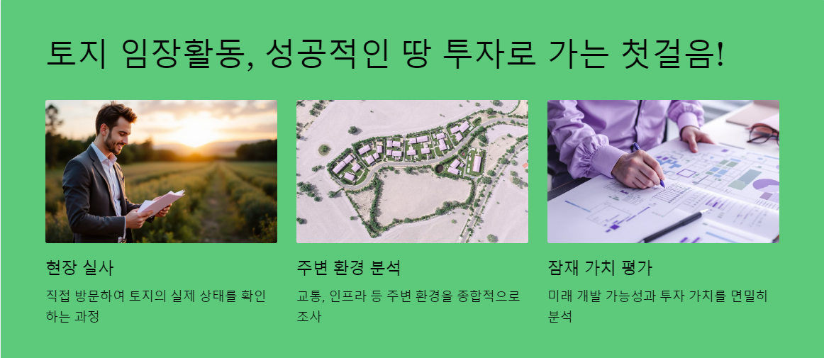 토지 임장활동은 땅 투자에 있어 매우 중요한 과정이에요. 토지 투자에서 성공하려면 단순히 좋은 지역을 찾는 것만으로는 부족해요. 실제로 땅을 방문해 직접 확인하고, 주변 환경과 잠재 가치를 면밀히 조사하는 것이 핵심이랍니다. 이를 통해 예상치 못한 리스크를 줄이고, 보다 나은 투자 결정을 내릴 수 있죠.