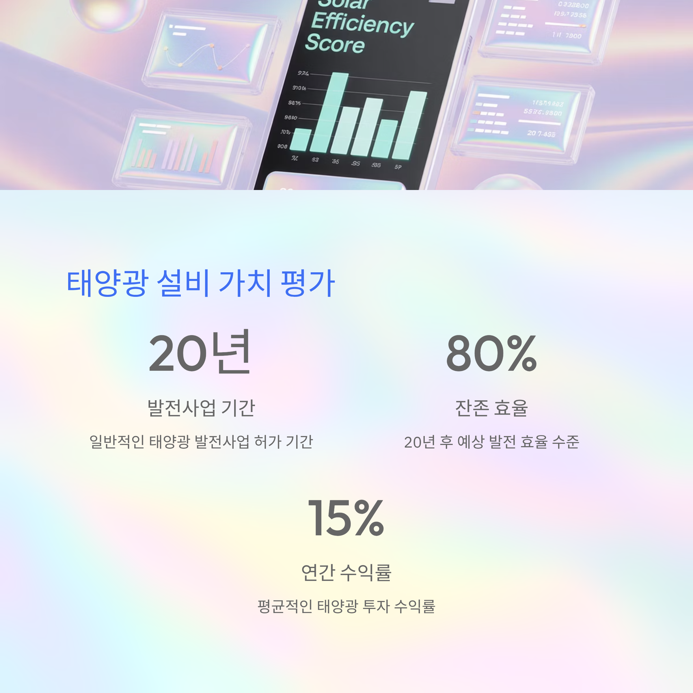 태양광 발전 설비의 가치는 단순히 설치 비용이 아니라, 향후 발생할 수익, 유지관리 비용, 잔존 수명 등 여러 요소를 종합적으로 따져봐야 해요. 그래서 전문 감정평가사를 통한 ‘설비 가치 평가 보고서’를 발급받는 것이 거래 시 신뢰를 높여주는 방법이기도 해요.