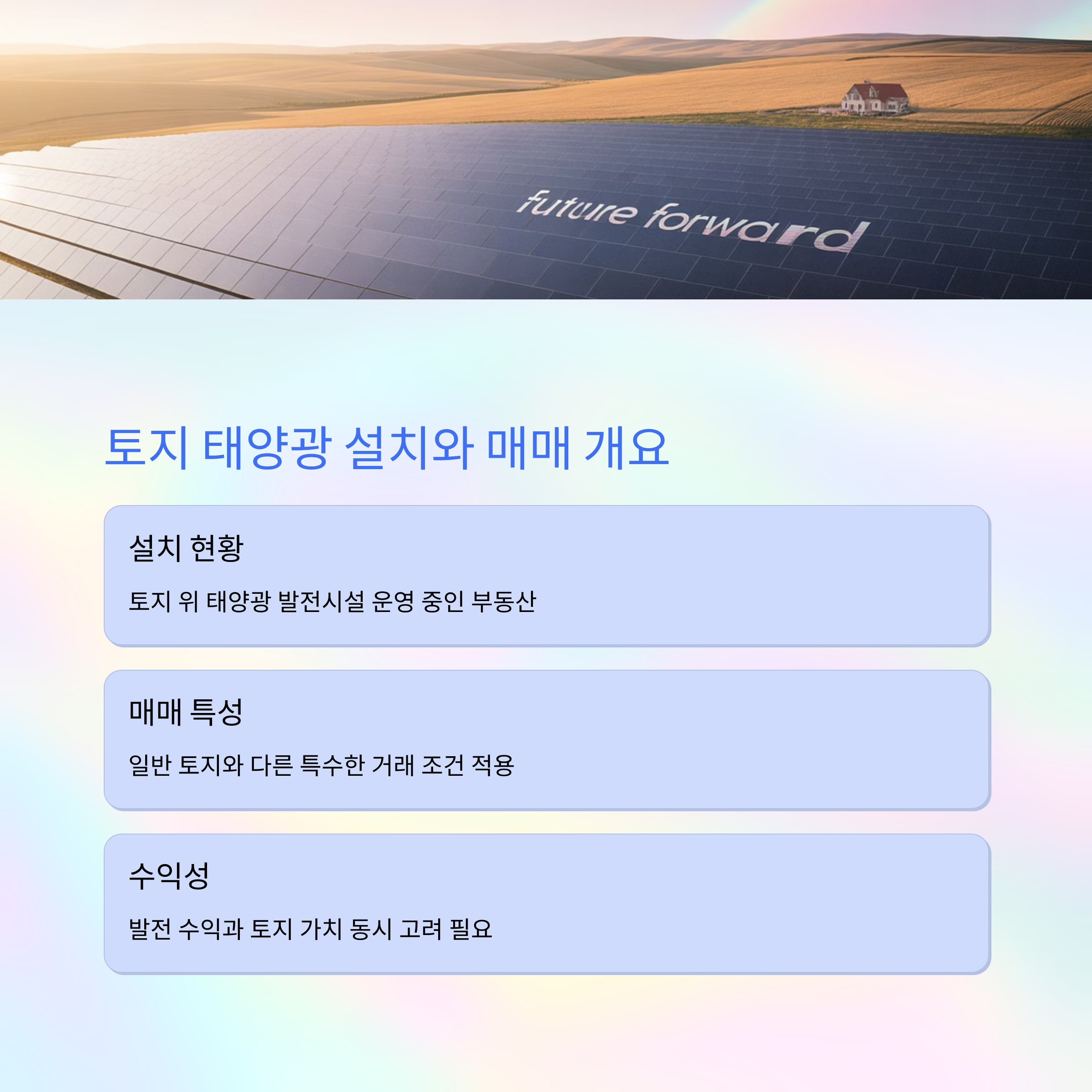 🌞 태양광 발전은 친환경적인 전력 생산 수단으로 주목받고 있어요. 특히 토지를 보유하고 있는 사람들 사이에서는 추가 수익 창출의 수단으로 태양광 발전설비를 설치하는 경우가 점점 늘어나고 있죠. 그런데 이렇게 설치한 태양광 설비가 있는 토지를 매도하려고 할 때, 과연 아무 문제 없이 팔 수 있을까요?