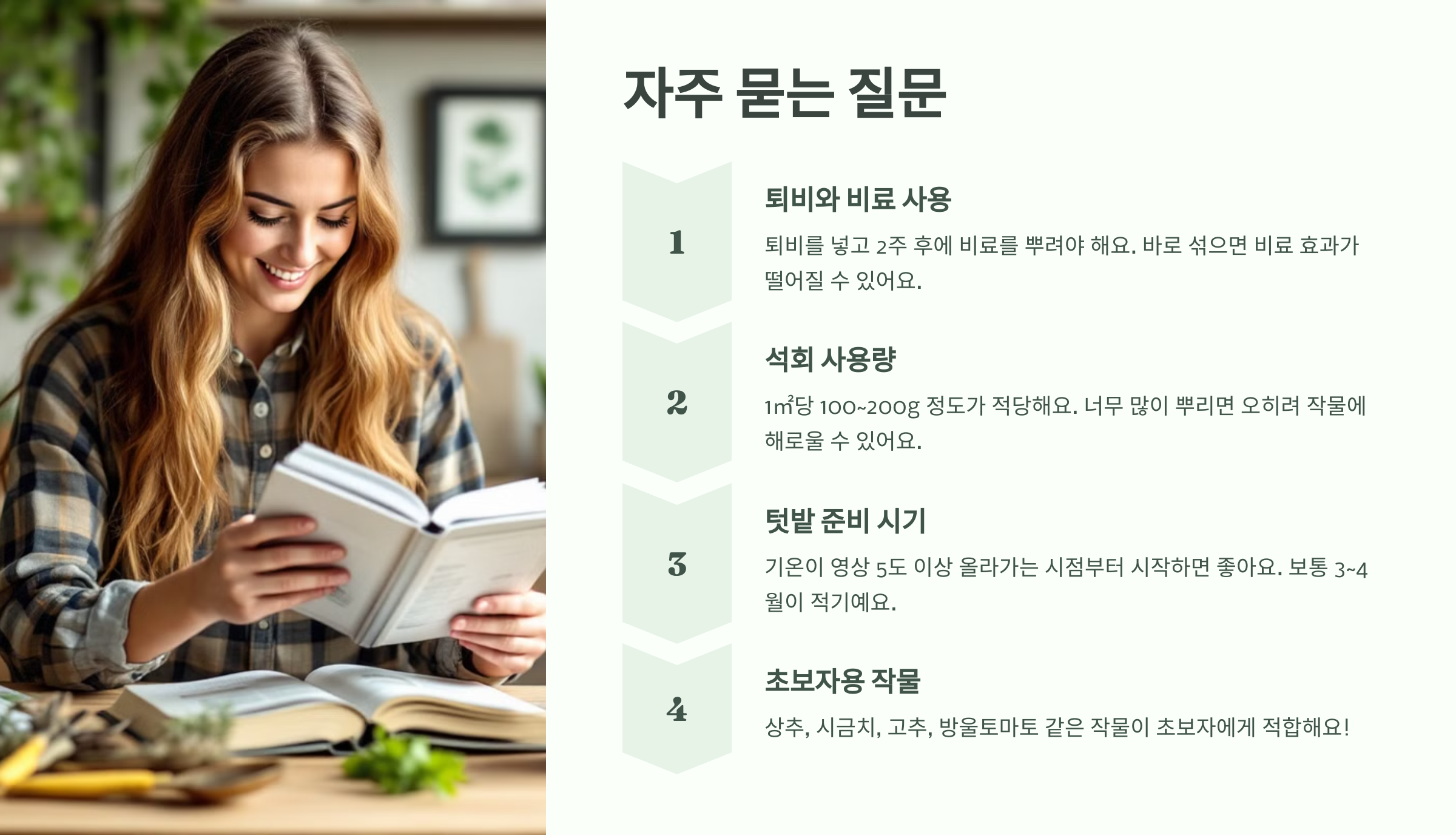 A1. 네, 하지만 먼저 퇴비를 넣고 2주 후에 비료를 뿌려야 해요. 바로 섞으면 비료 효과가 떨어질 수 있어요.