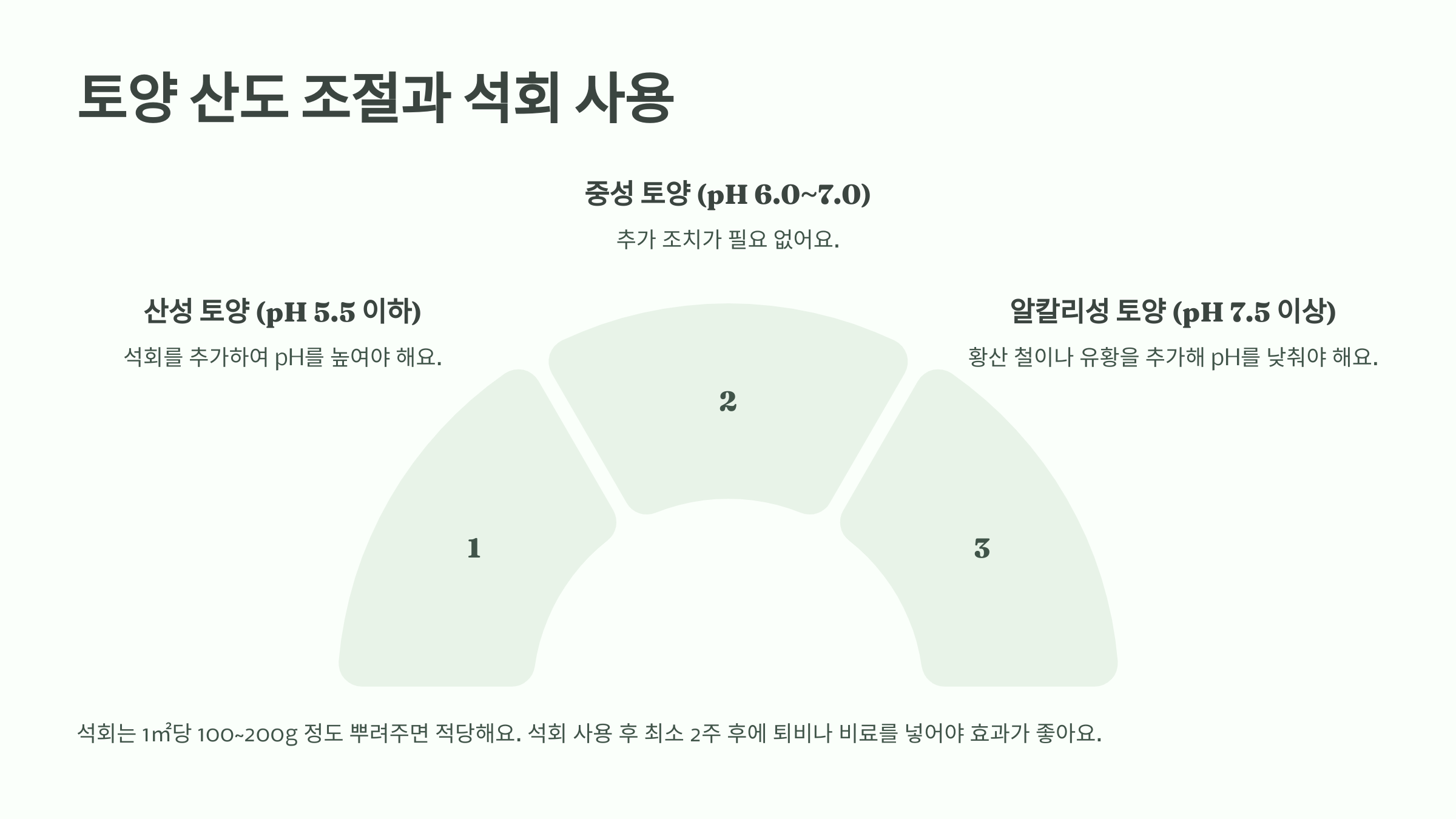 | 토양 상태 | pH 범위 | 개선 방법 |