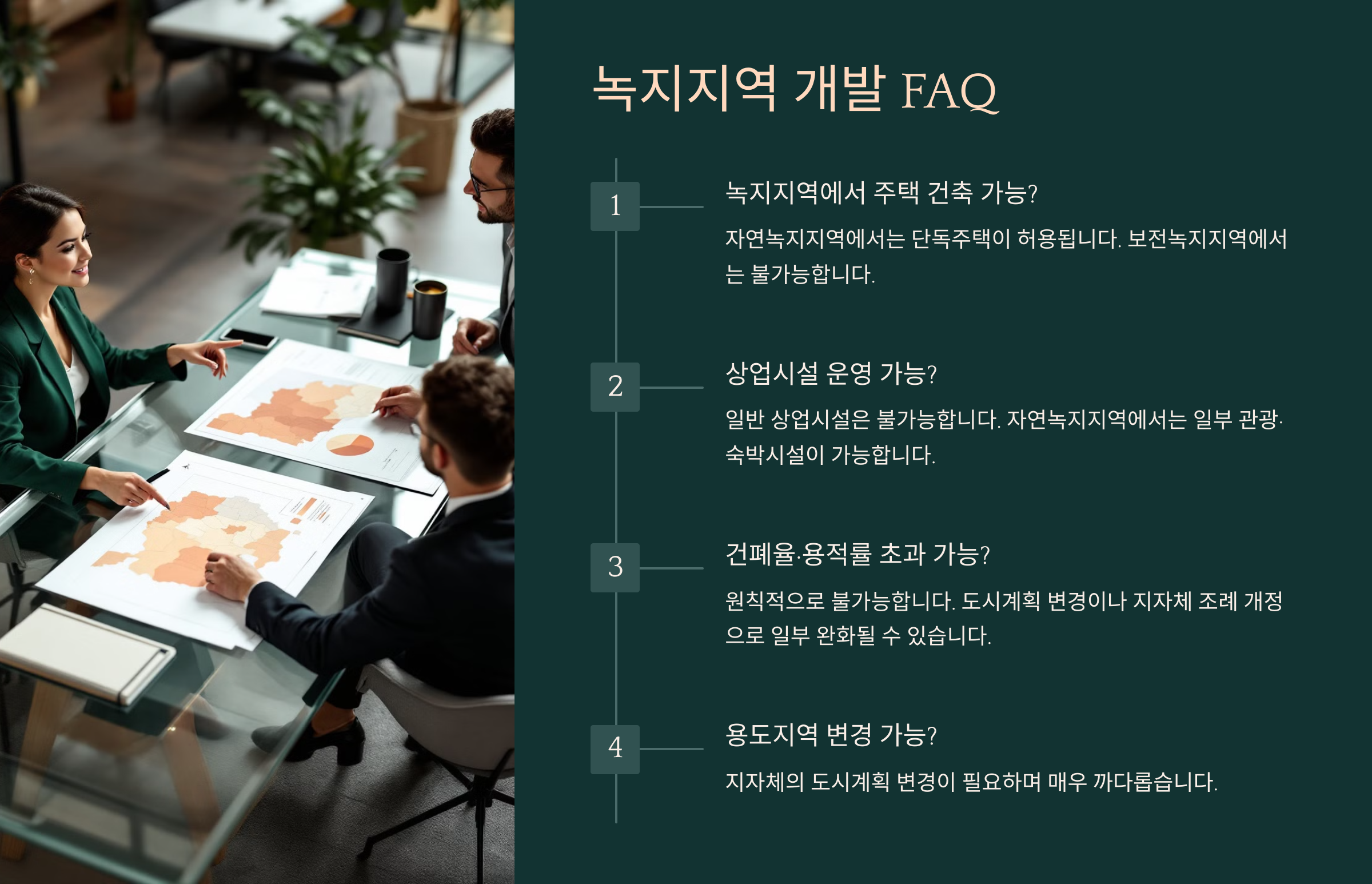 ✅ 녹지지역 개발은 까다로운 규제가 많지만, 친환경 개발과 연계하면 새로운 기회를 찾을 수도 있어요! 🌍