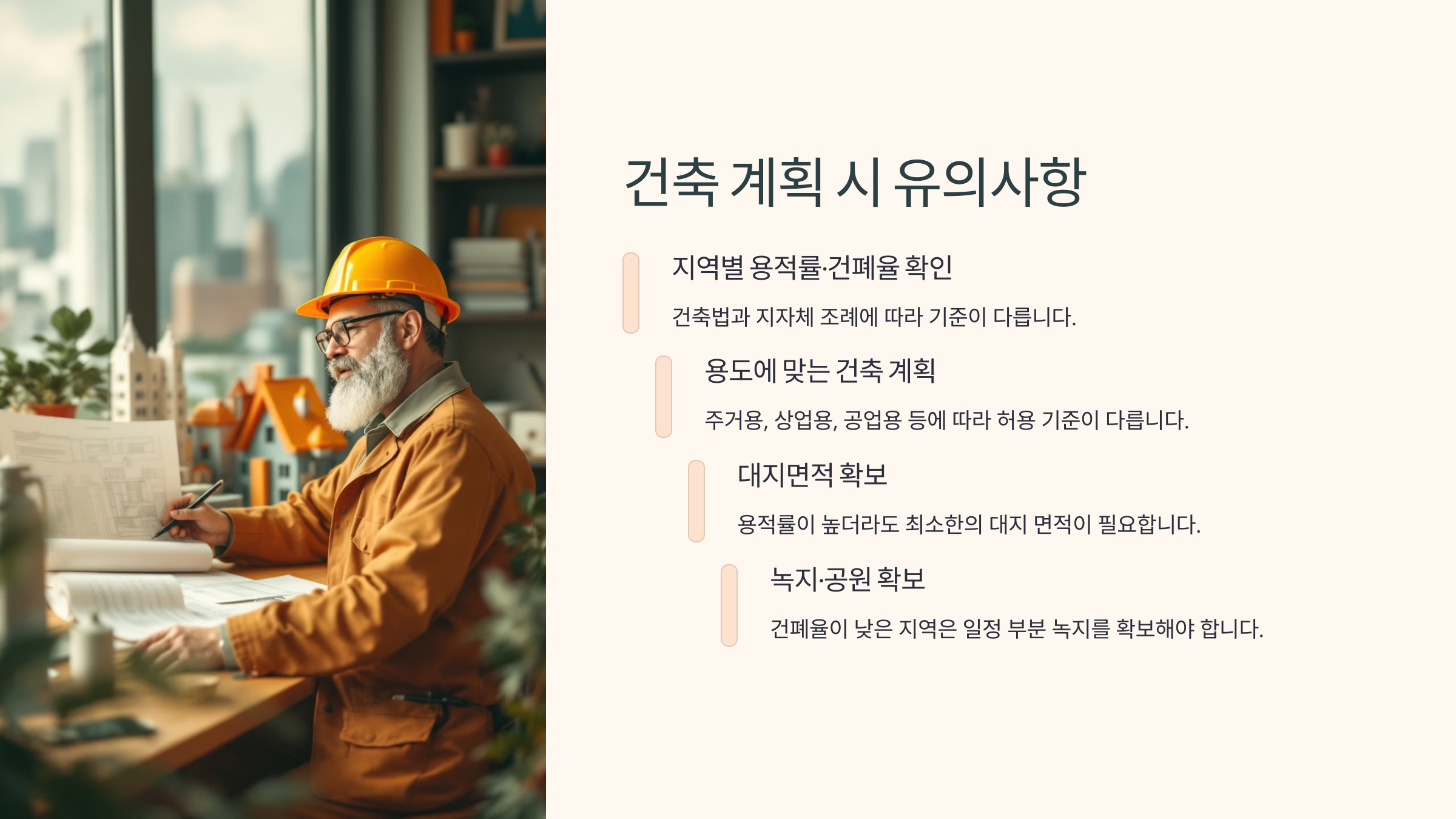 건물을 짓기 전에 용적률과 건폐율을 잘 따져야 문제가 없어요. 📏