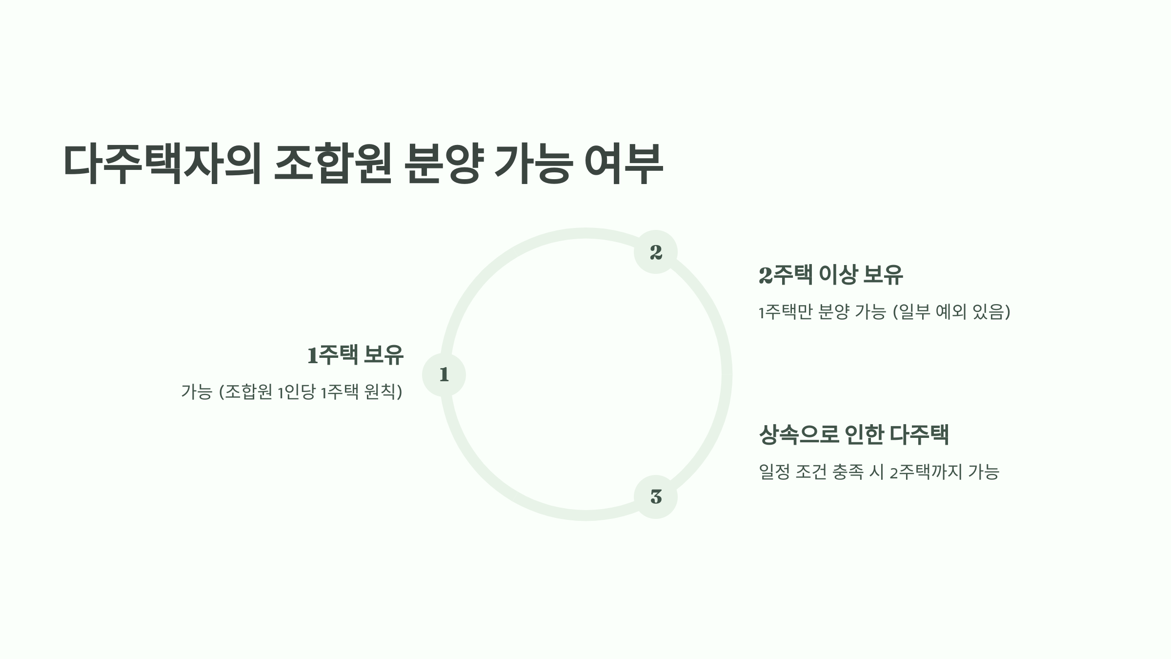 | 1주택 보유 | 가능 (조합원 1인당 1주택 원칙) |