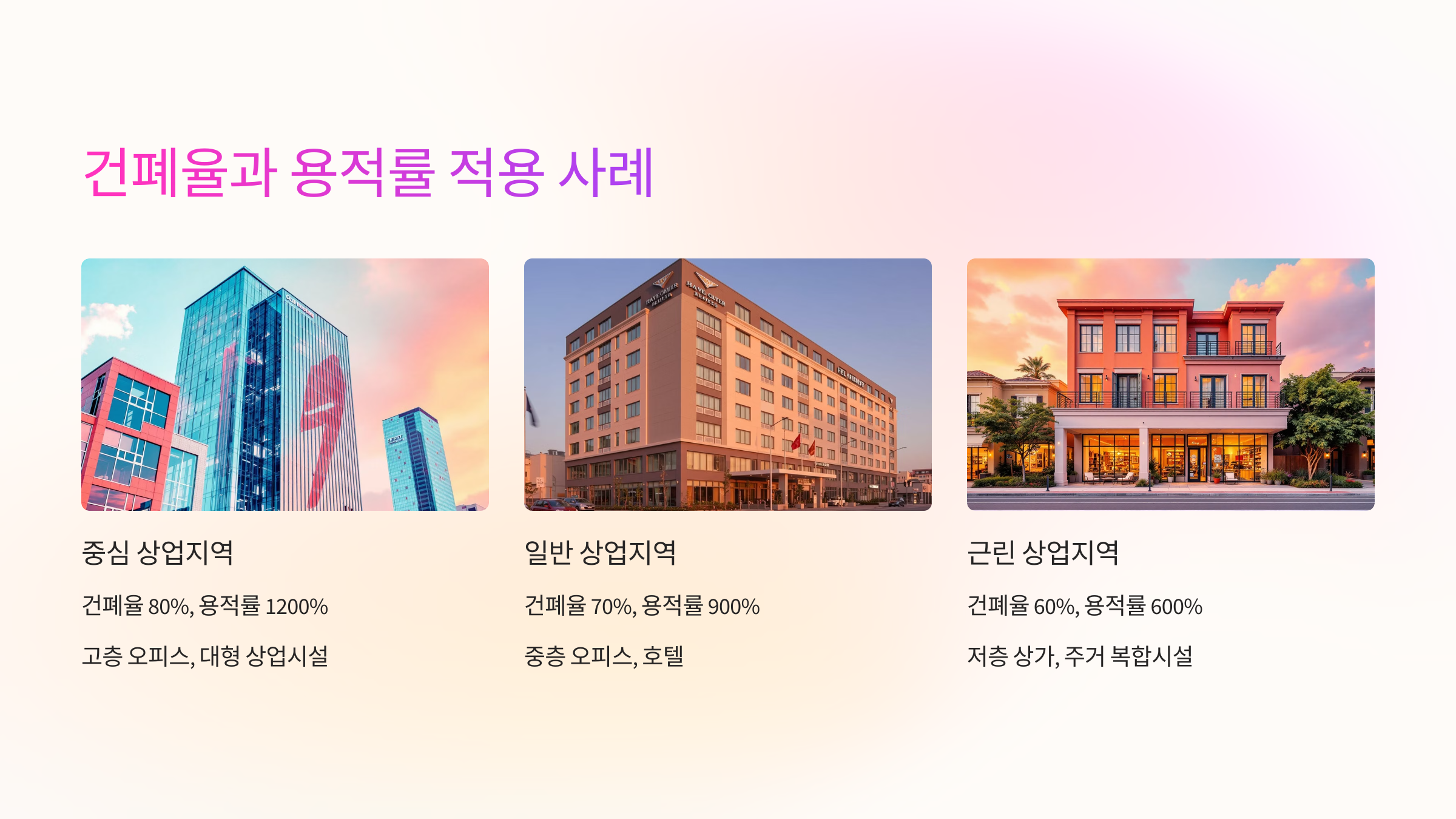 그럼, 상업지역에서 적용되는 건폐율과 용적률 기준을 자세히 살펴볼까요?