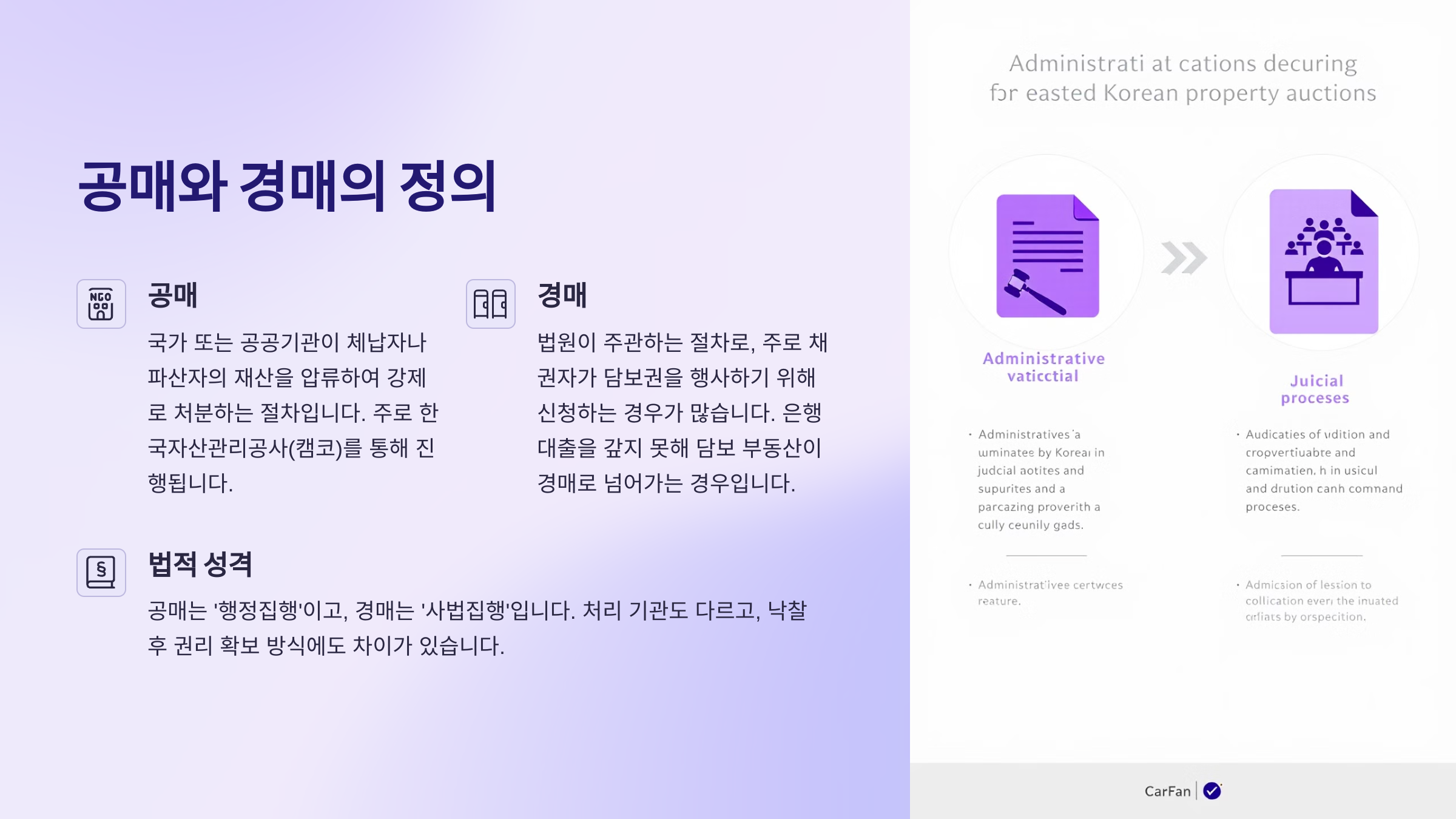 공매는 정부나 지방자치단체가 주도하는 만큼 빠르게 진행되는 반면, 경매는 법적 절차가 복잡하고 시간이 오래 걸릴 수 있어요.