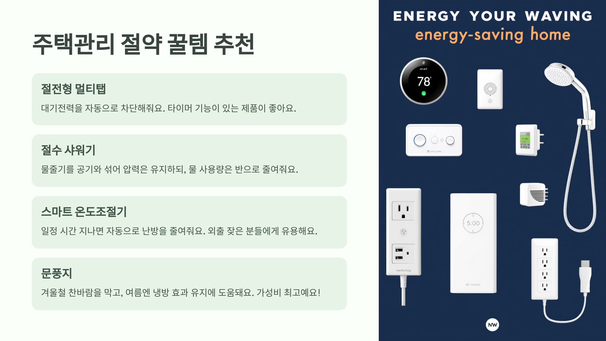 절약을 도와주는 꿀템들도 많아요. 가장 인기 있는 건 ‘절전형 멀티탭’이에요. 대기전력을 자동으로 차단해줘서 전기 낭비를 막아줘요. 타이머 기능이 있는 제품을 쓰면 외출 중에도 자동 차단돼요.