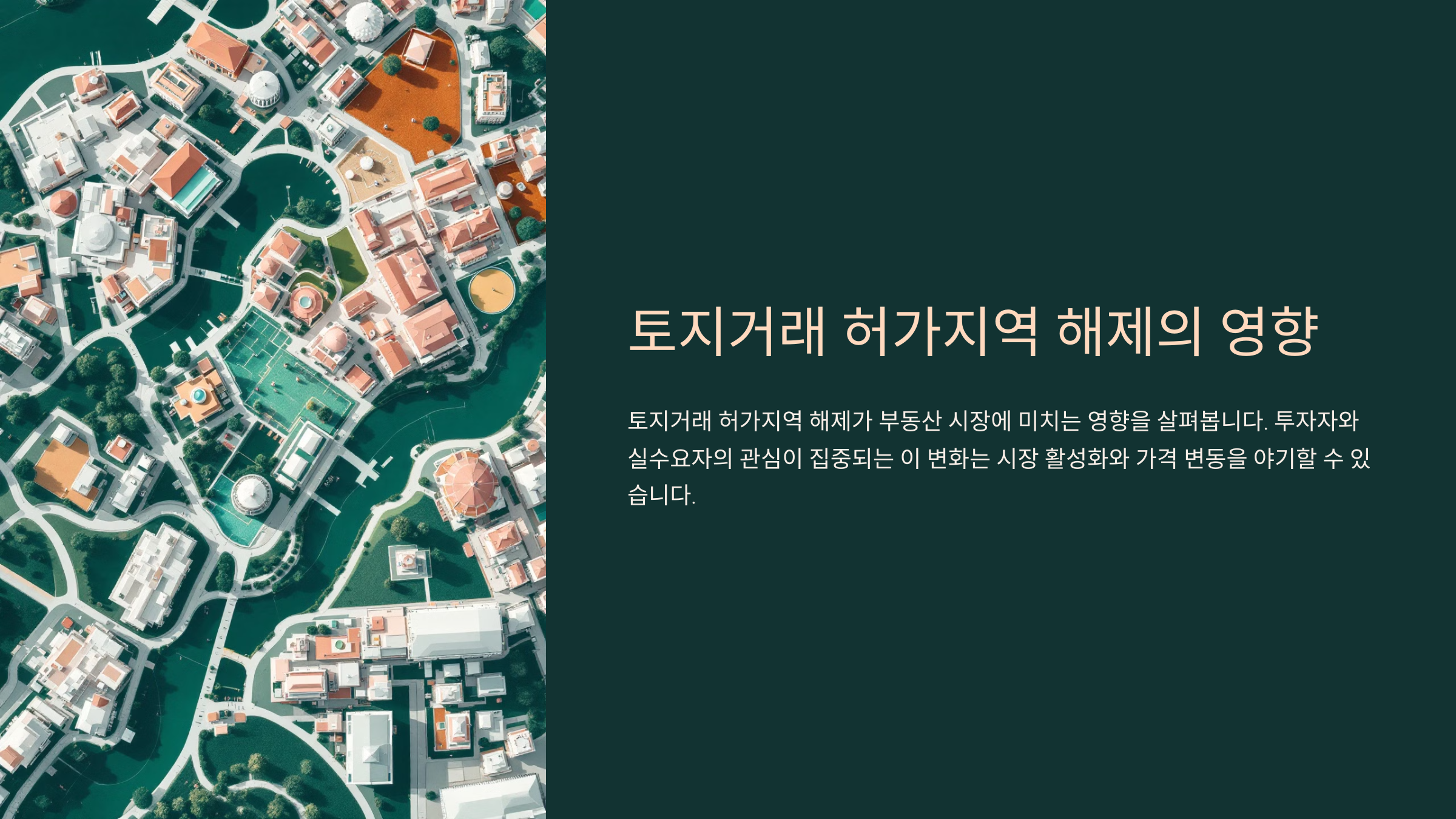 ✅ 토지거래 허가지역이 해제되면 부동산 시장에 여러 긍정적인 변화가 생길 수 있어요. 거래 활성화, 지역 개발 촉진, 투자 유입 등의 효과가 기대되죠.