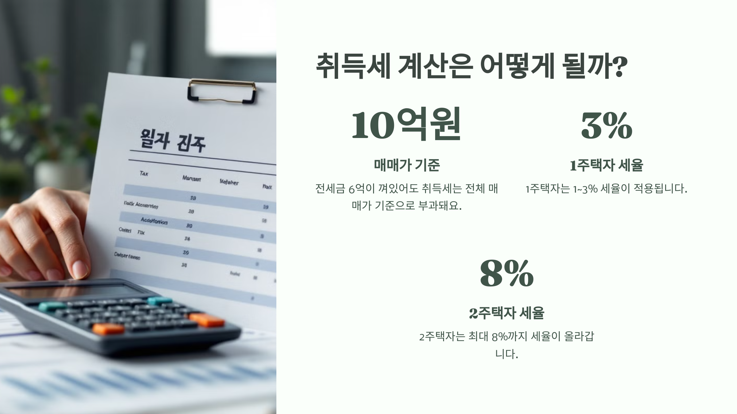 전세가 낀 아파트를 샀을 때, 많은 분들이 궁금해하는 것 중 하나가 바로 취득세예요. 전세금이 끼어 있으니 전체 매매가가 아닌 ‘순수 자기 부담분’만 과세된다고 알고 계신 분도 많죠.