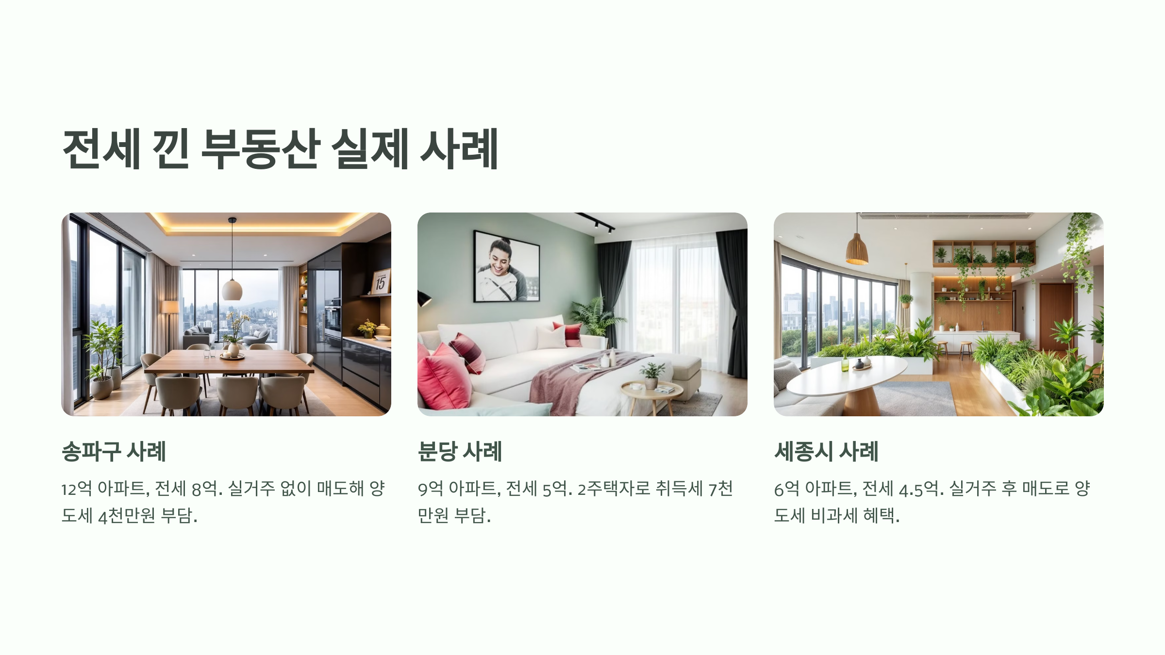 💡 요약하자면, 전세 끼고 매수하는 건 효율적인 전략이 될 수 있지만, 정확한 법적·세무적 분석 없이는 ‘세금 폭탄’이 될 수도 있어요.
