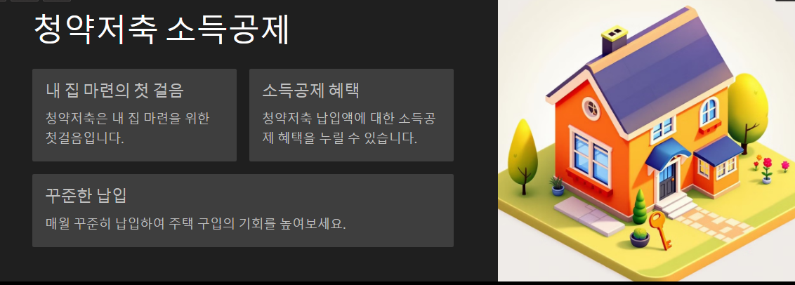 청약저축 납입액에 대해 소득공제를 받을 수 있으니, 매월 꾸준히 납입해보세요. 소득공제뿐 아니라 주택 구입의 기회도 높아집니다. 😊