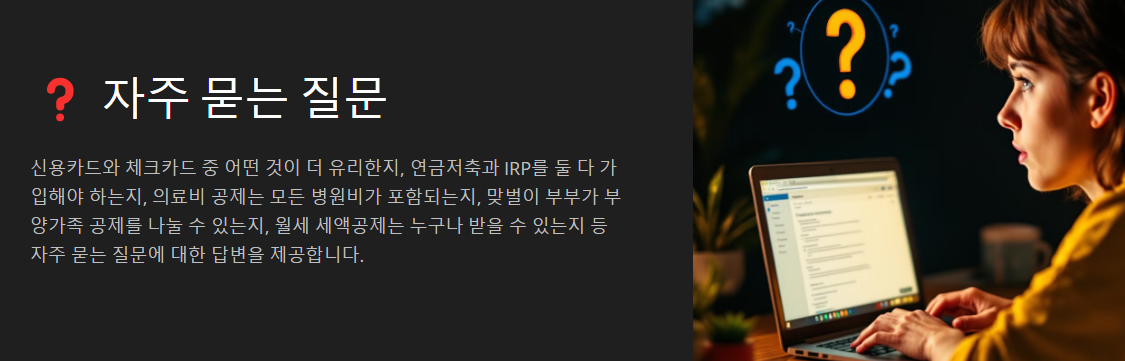 - 의료비 공제 팁: 소득이 낮은 배우자에게 의료비를 몰아주면 공제 혜택이 더 커질 수 있습니다.
