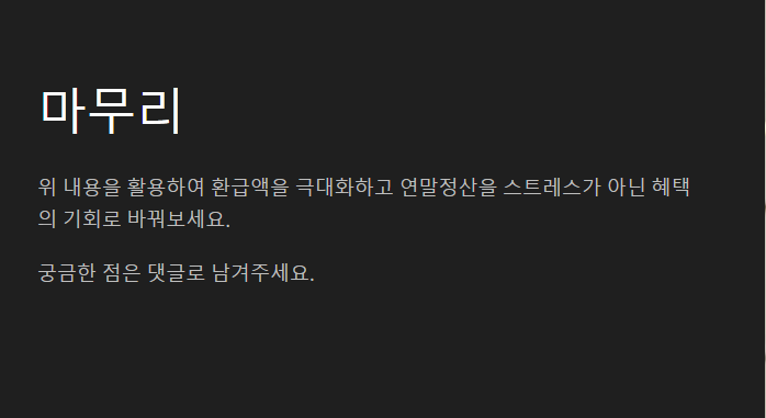 여기까지! 위 내용을 활용해 환급액을 극대화하고, 연말정산을 스트레스가 아닌 혜택의 기회로 바꿔보세요. 😊